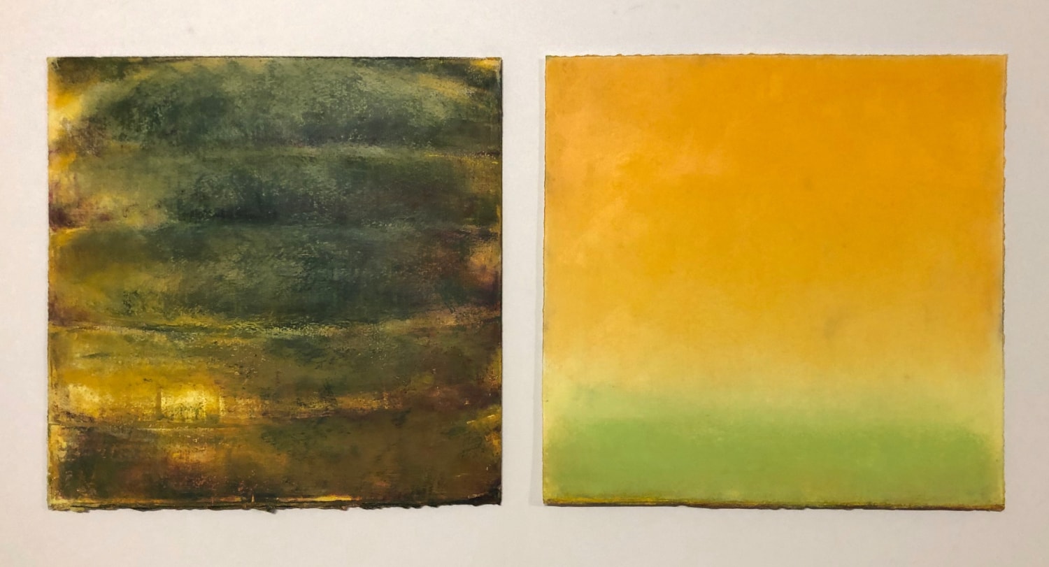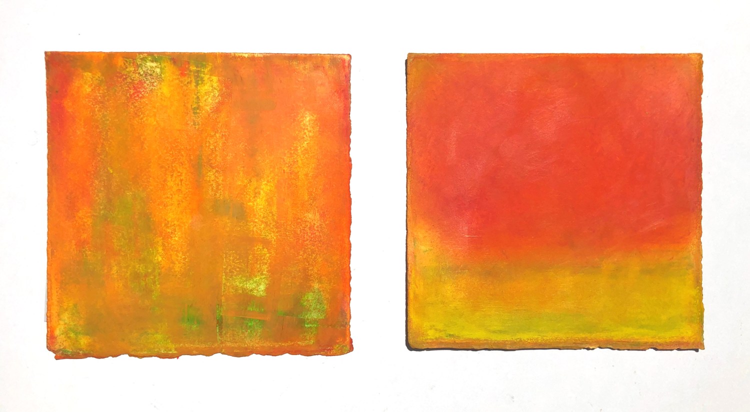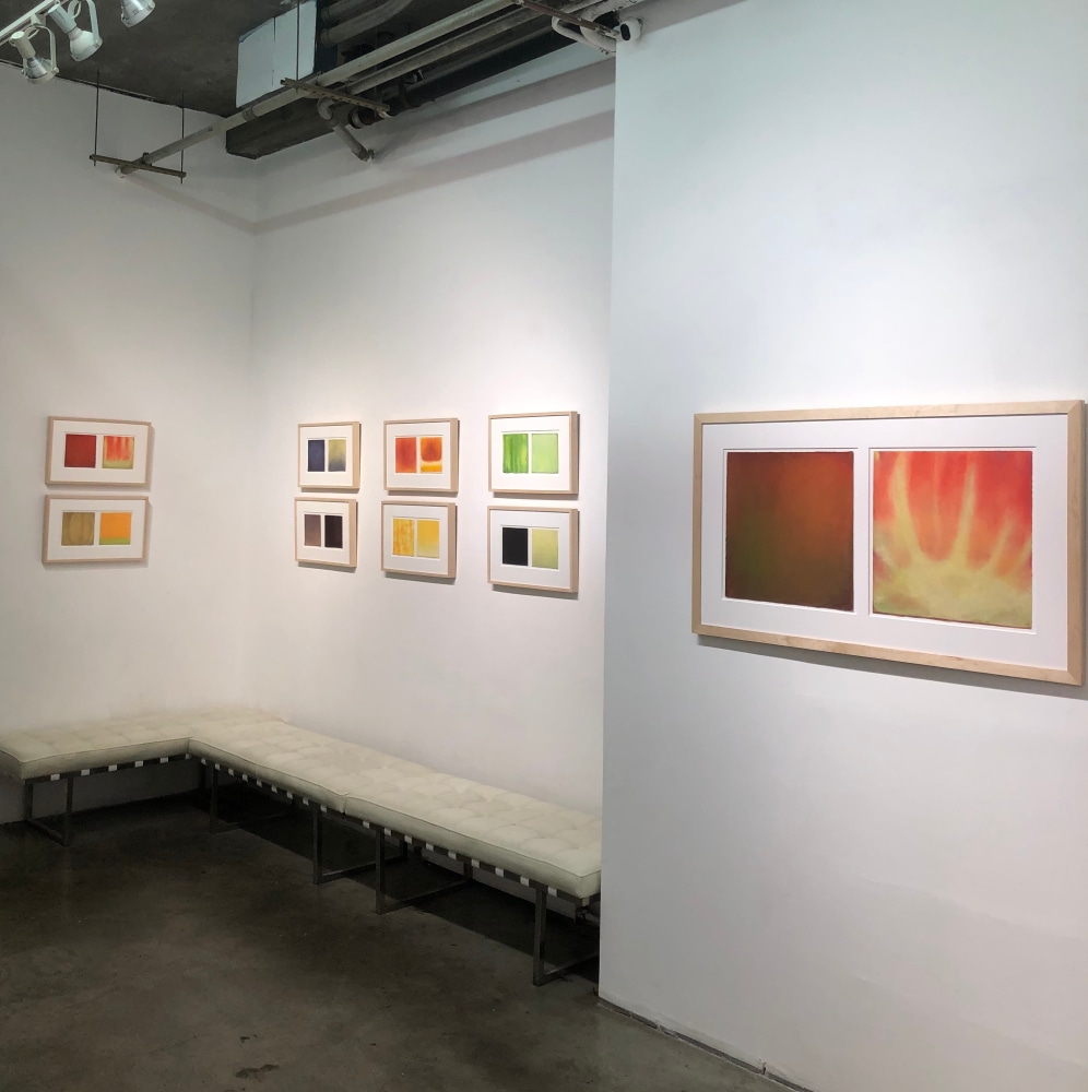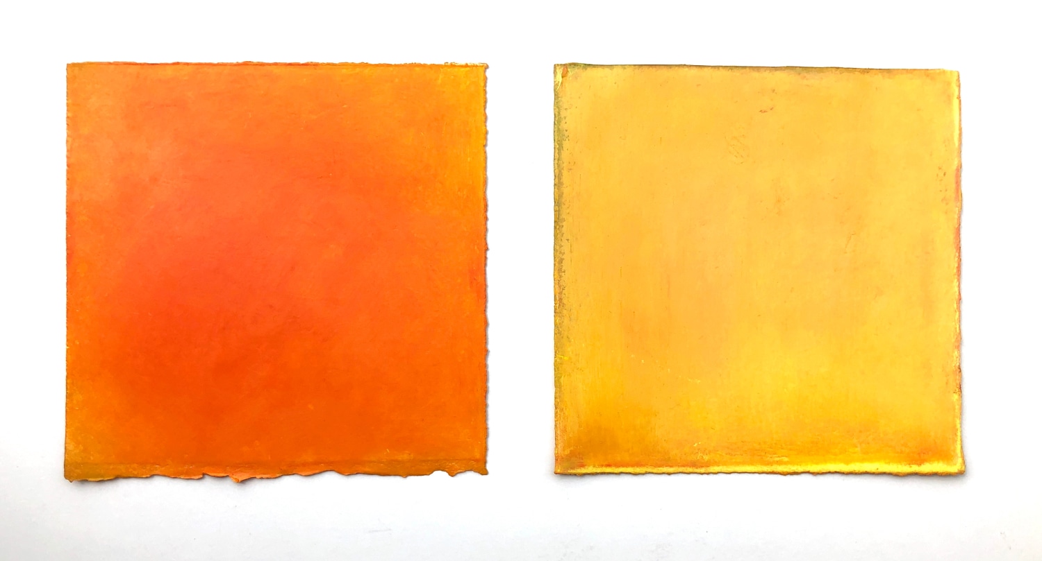Craddock explores new scales and sizes in her recent pastels. In addition to her standard square-foot format, she has added smaller, study-sized pairings, and more commanding, large-scale sets to her oeuvre. The demure, half-sized scale offers an intimate view of her subjects, suggesting a close and contemplative practice. Craddock saturates these smaller studies with dramatic color shifts and deliberately executed gradients, visualizing the flavor packed into her produce. The expansiveness of Craddock’s new, larger scale becomes a playground for form and volume. Opaque striations map out furrows and crests, transforming the plane into sensuous cartography. Ever interested in the tactility of her “sitter,” Craddock captures not just the two-dimensional landscape of its surface, but the curvatures of its body, as well. Craddock’s saturated colors are redolent of the smells and tastes of summer, however their smooth surfaces belie much layering and scraping away below. These works are intended to be experienced at the edge of description and abstraction.