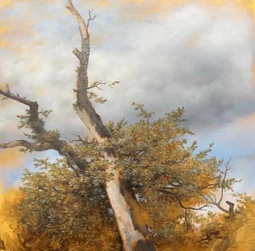 Eileen Murphy’s paintings on panels are a mirage of disparate memories. Lived experience, borrowed art historical footnotes, and imagery drawn from literary references swirl together and coalesce into shimmering sylvan scenes. Allusions to Patinir, Jacob von Ruisdael, Frederick Church, lines pulled from Rilke, and Murphy’s own personal history emerge deftly from the same brushstroke. The result is images that are simultaneously foreign and familiar, deeply intimate yet shared in a common vernacular. Murphy builds these compositions from layers of carefully applied oil paint, her brushstrokes growing increasingly specific and nuanced with each new stratum. Because she works on panel, the pigment is not absorbed into the material, but rather, sits atop the surface, the color remaining fully saturated. Without this anchoring effect, Murphy’s landscapes become lofty and voluminous, further intensifying their surrealist quality.