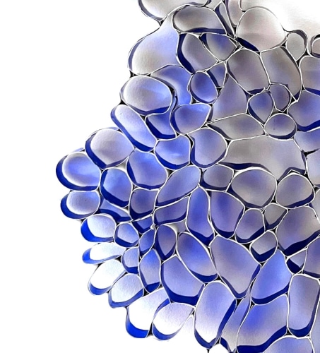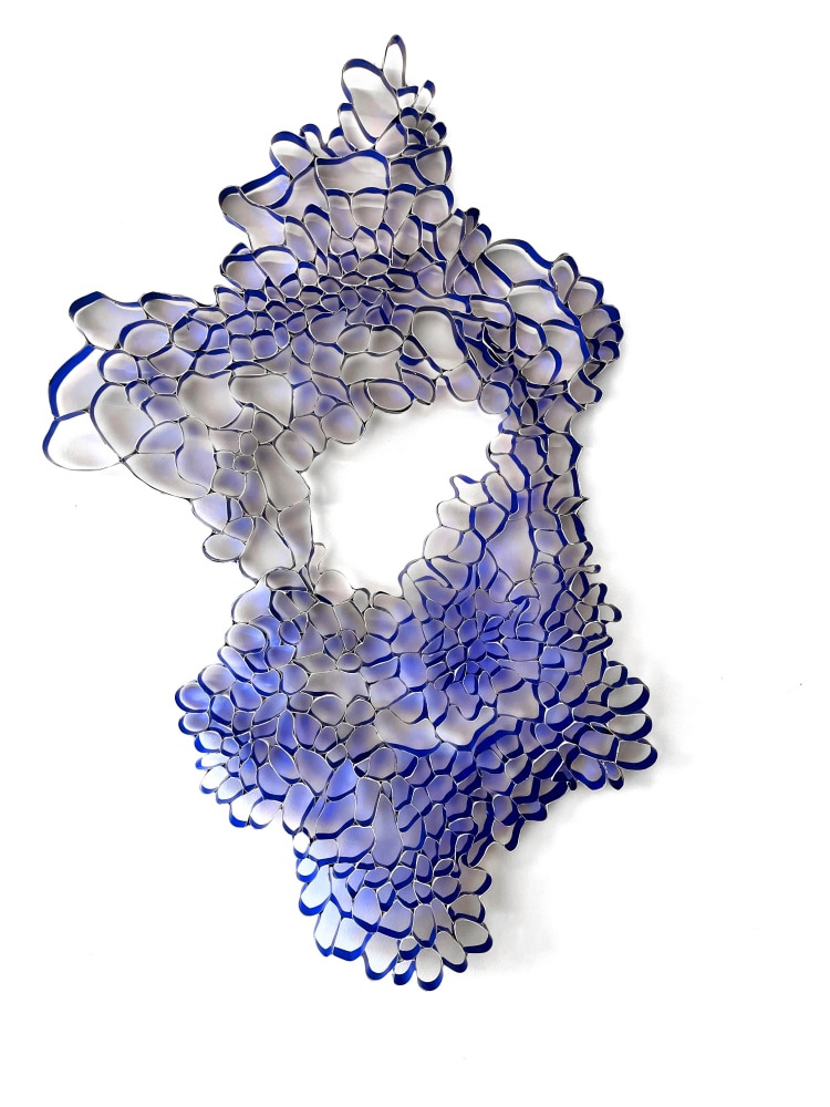 My work straddles the worlds of two and three dimensions. An artwork might start as a wall relief and end as a floor sculpture. Driven by materials that are manufactured and handmade, I repurpose and transform them. The work is inherently imbued with meaning beyond the planned and researched, as its materials become a contemporary artifact reflecting the decade and century while also commenting in part upon the accumulation of cultural debris. I build vibrant interactive landscapes that visualize an environment while integrating with its surrounding architecture. My process includes incorporating effects that distort dimension, alter optics and challenge our perception of how image and meaning fuse. Relief allows for the play of light and draws out shadows or radiance of a material, bridging the ethereal with the real. Color is used purposefully as emotive and associative. Much of my work offers map-like views of “systems” found in the natural world. These systems contemplate daily life as a collection of observed objects and data that reconfigure communicative behavior into meaningful patterns and structures. Ultimately my work is about joining together a variety of elements that advocate transformation.