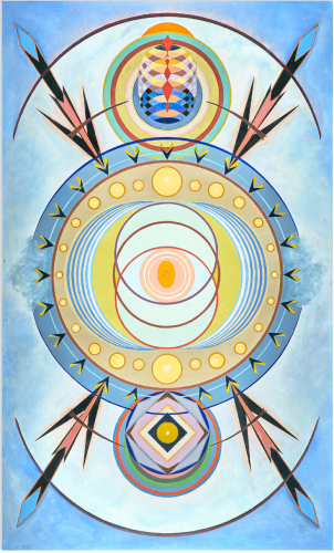 Tayo Heuser was born in Washington, D.C. and raised across North, East, and West Africa before studying at the Rhode Island School of Design. Her experiences among the Roman ruins of Carthage, the Great Mosque of Kairouan, and travels through Libya, Sudan, and the Sahara deeply shaped her artistic vision. The desert’s vast horizons, the vivid textiles of the Ivory Coast, and encounters with shamans all informed her fascination with geometry, pattern, and cultural symbolism.  Heuser’s work reflects her identity as a world citizen, merging visual and spiritual influences. Her paintings serve as portals—spaces of reflection, balance, and transcendence—exploring the interplay between light and darkness, spirit and matter.