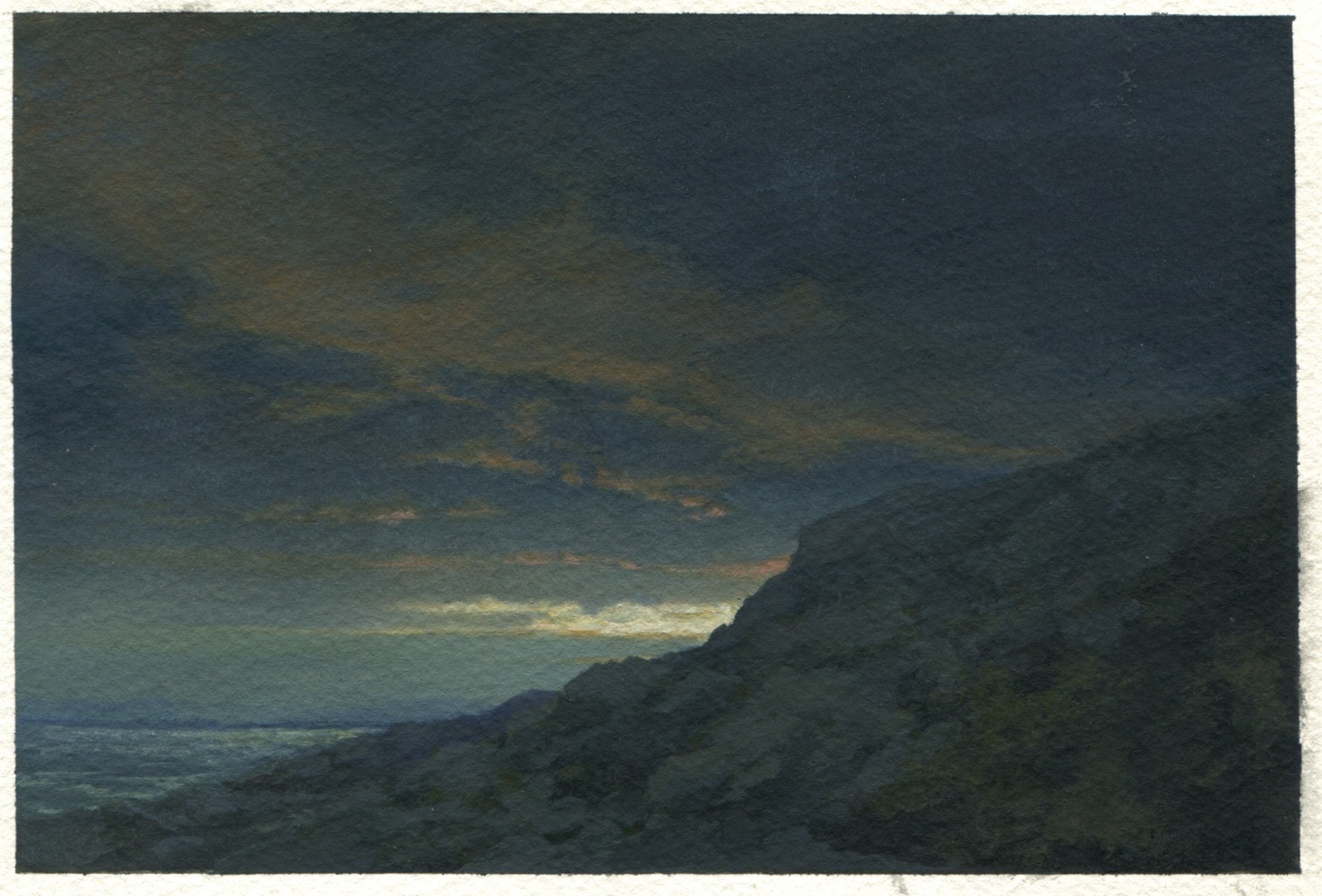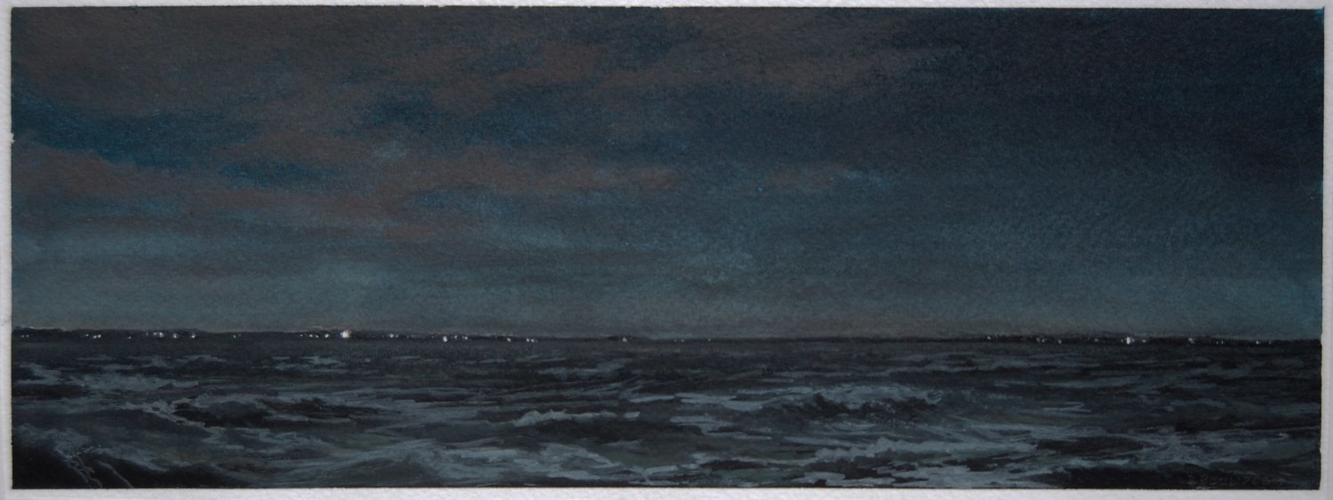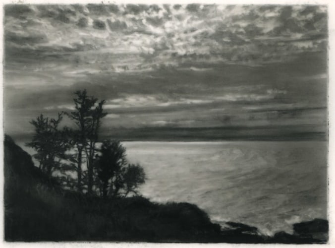 In 2019, Bell was awarded her first Monhegan Island Residency, and she returned to the island in September 2020. While there, she was inspired to begin working with watercolor, a new medium for her, as well as to continue to create paintings and charcoal drawings. This exhibition focuses on the work created on the island and inspired by her time there. Monhegan, which is off the coast of Maine, has been drawing artists from around the world since the mid-19th century who have been deeply affected by its rugged landscape and unique light -- including William Trost Williams, George Bellows, Rockwell Kent, Edward Hopper, Winslow Homer and three generations of the Wyeth family.