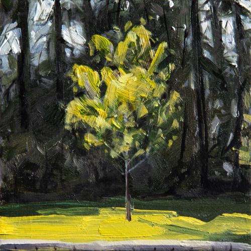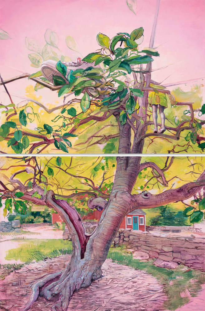 Melanie Vote embarks on a visual exploration of impermanence, emphasizing the ever-changing nature of existence and inviting her viewers to be transported into her forest experiences. Vote's deep connection with trees is palpable and invites reflection on our relationship with the natural world. Raised on a farm in Iowa and now a long-time resident of New York City, her paintings delve into the intricate relationship between humans and the land, linking her formative and present influences in nature. Each of Vote's intimately sized paintings in this exhibition begins en plein air and the artist later weaves subtle narration to the work in the studio.