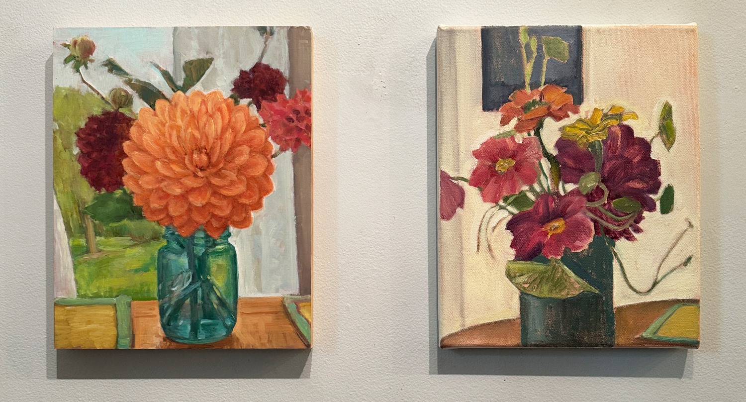 Craddock’s floral paintings are loci for memory, spanning more than a decade and various dwellings. The earliest painting in the exhibition is from 2010 which stands as a seminal work that evolved within this series. Sharing a kindred spirit with such artists as Jane Freilicher and Lois Dodd, Craddock uses the still life genre to hint at an autobiographical subtext. This collection of intimate paintings encapsulates Craddock’s experience during the pandemic in the Hudson Valley, New York. Created in the midst of COVID-isolation, Craddock’s still lifes are quiet riots of color and texture, often evoking a journal-like quality with their scale. The blooms, resplendent in their brief prime, mark the passage of time in these tightly composed pieces. In this context, Craddock’s focus on the flowers’ color variations and textures is all-consuming; a welcome escape from the fraught world of that time.