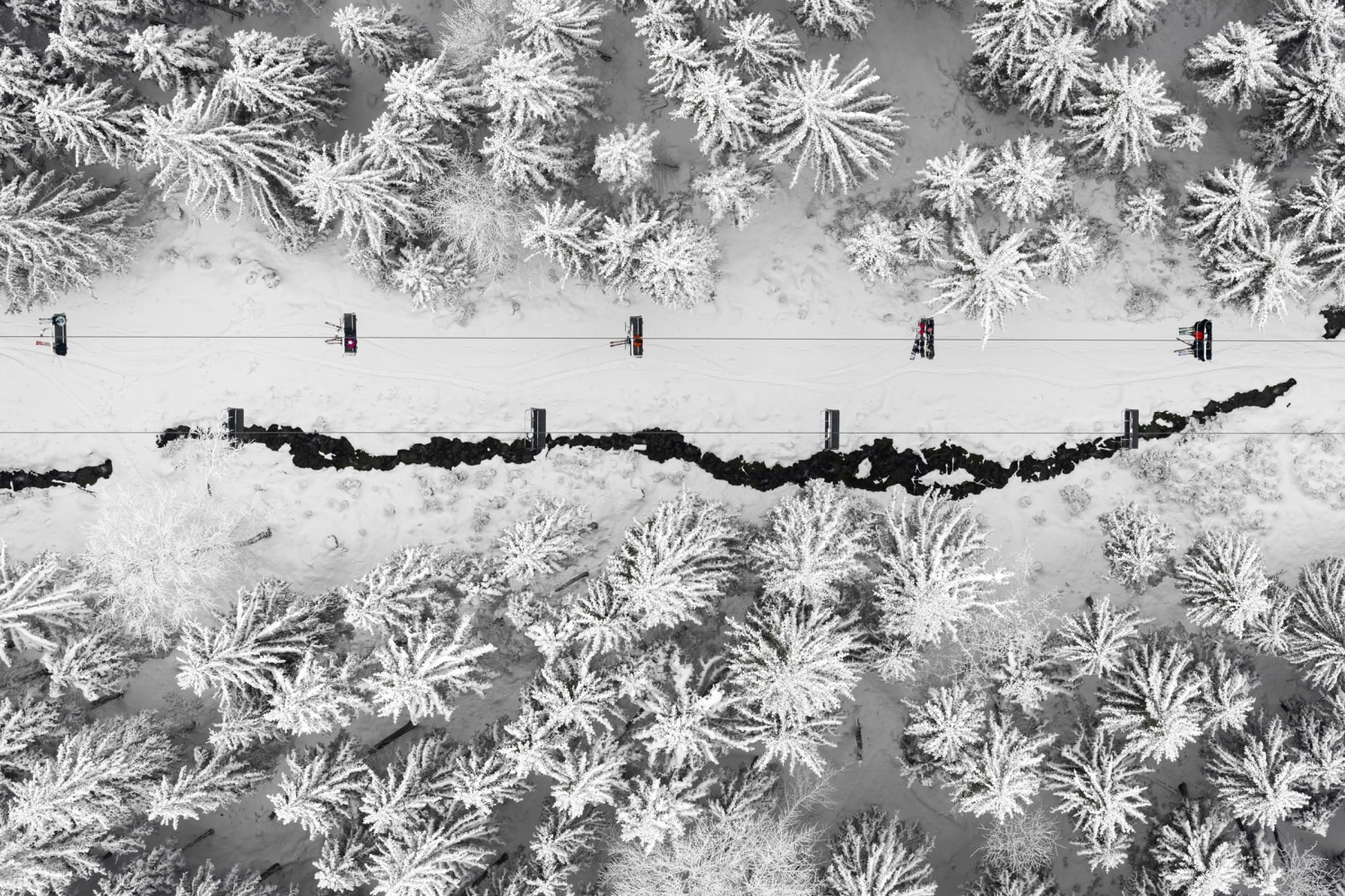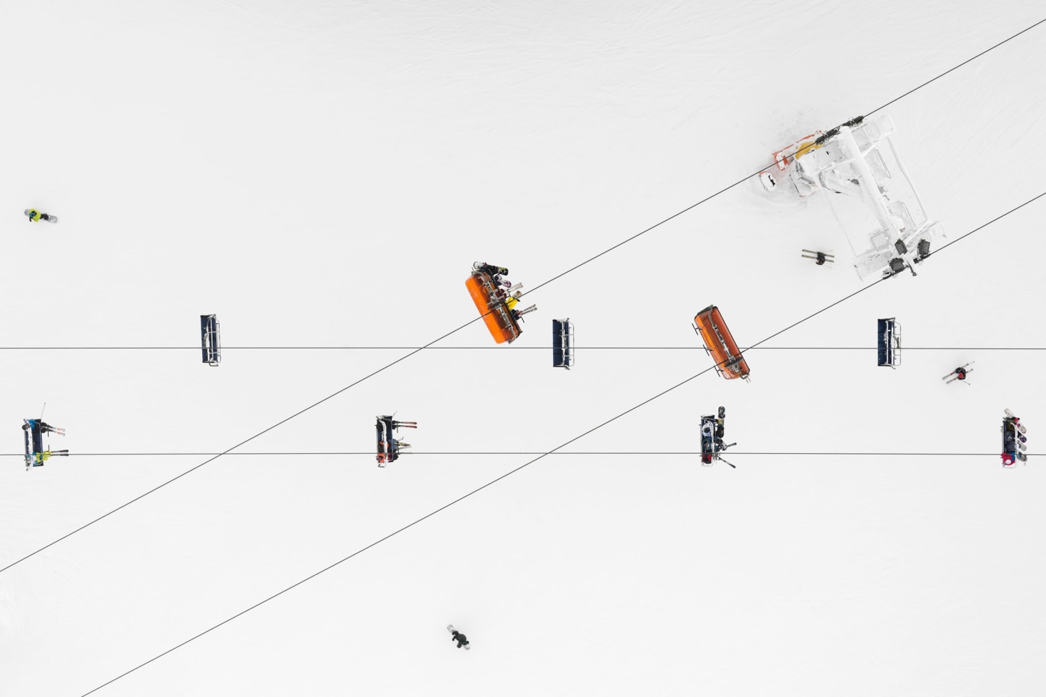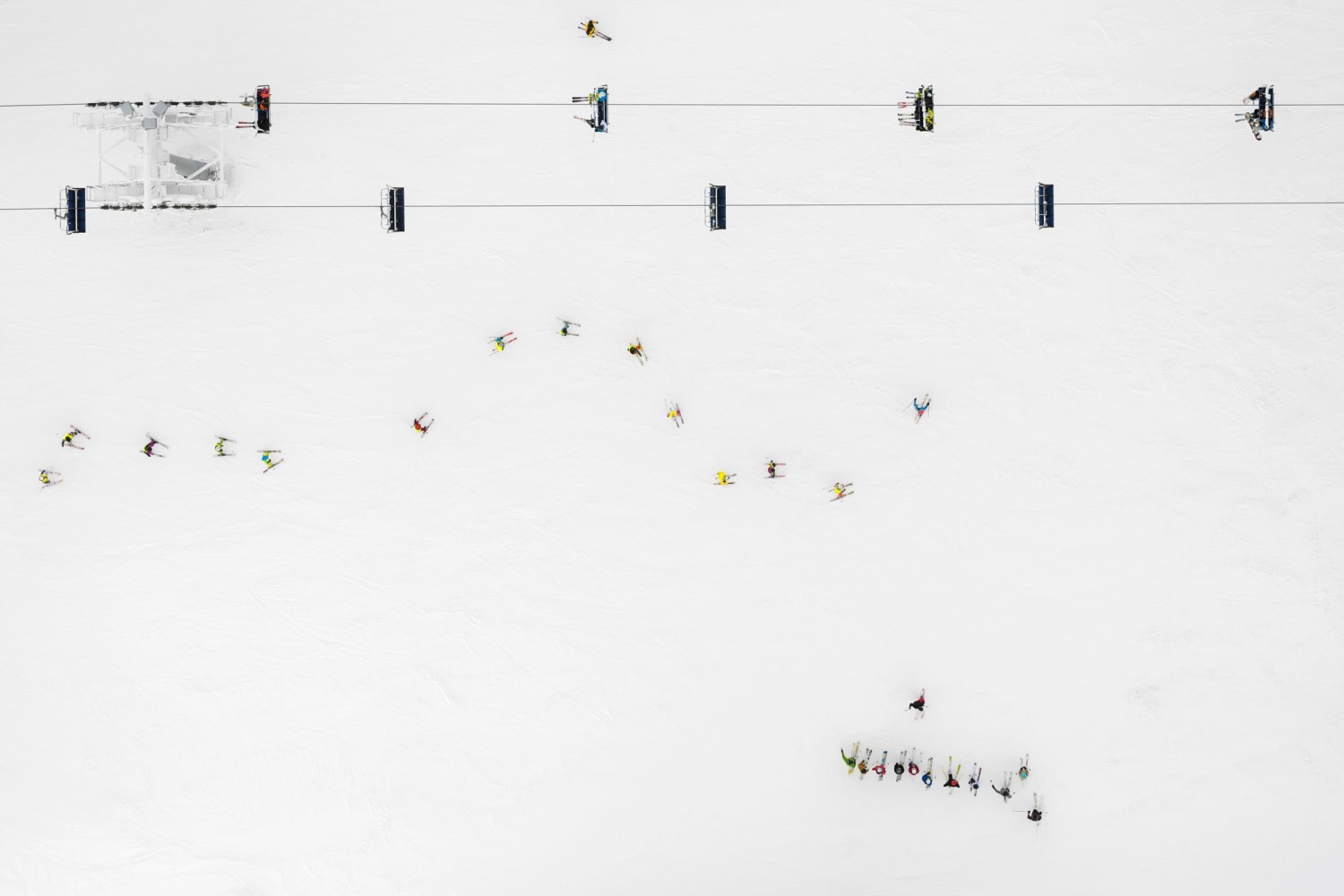 Kacper Kowalski began his career as a landscape photographer, far before the preeminence of drones or Google Earth, strapping himself into a gyrocopter and exploring his native Poland through the lens of a film camera. This repeated, almost ritualistic exploration of home became the foundation of his work. Kowalski observes the macro-evolution of the Polish landscape as it is progressively shaped and morphed by its inhabitants. Seasons shift rapidly in riots of color and pattern, humans leave intricate tracks in barren slates of snowfall, and in his series, “Toxic Beauty,” large-scale industry spills supernatural plumes of ash and smoke into the atmosphere, producing a painterly tableau of texture and light. Witnessed from 500 feet above, these instances of time and change are flattened and compressed into two-dimensional cross-sections like a microscope’s slide. At once massive and miniature, Kowalski teases out the universality in the patterns of change, showing the intrinsic link between people and land. Kowalski’s most recent series, “Event Horizon,” includes aerial images of bodies of water in Northern Poland, near his Tricity home. At once violent and tranquil, ghostly orbs of thawed ice float in an endless abyss, and craggy masses of ice sheets gnash at the water. Taken from a much higher altitude, these photographs are not only landscapes, but visual containers for the experience of flight.