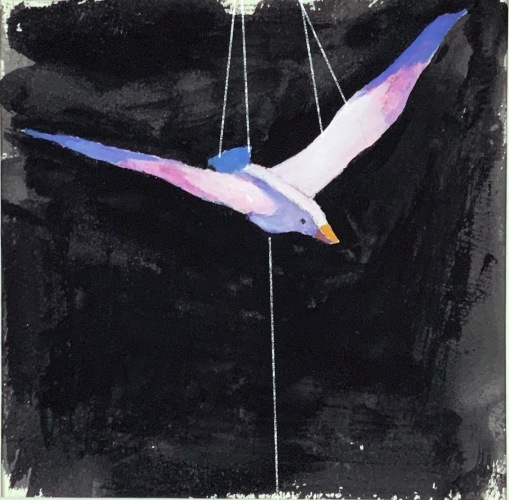 Richard Finkelstein works in many media, including photography, drawing, painting, model and installation building, and clay and wire sculpture. The work comes from his background as a trial lawyer; his art, like his trial practice, has always been about shaping narratives, telling stories, straddling truth and deception. Themes of guilt and innocence, shame and secrets, loneliness and voyeurism appear in his pieces.