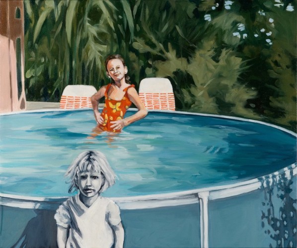 Sharon Shapiro’s paintings and collages explicate and untangle the multilateral constructions of the female self. Layers and fragments of oil paint and collage mingle with references to memory, pop-culture, and iconography, resulting in kaleidoscopic scenes that are at once deeply rooted in personal history, yet somehow detached. Shapiro’s women and girls are permitted to be complex without being convoluted. Visual disruption thus functions as a tool for examining female vulnerability and self-possession. Shapiro lives and works in Virginia.