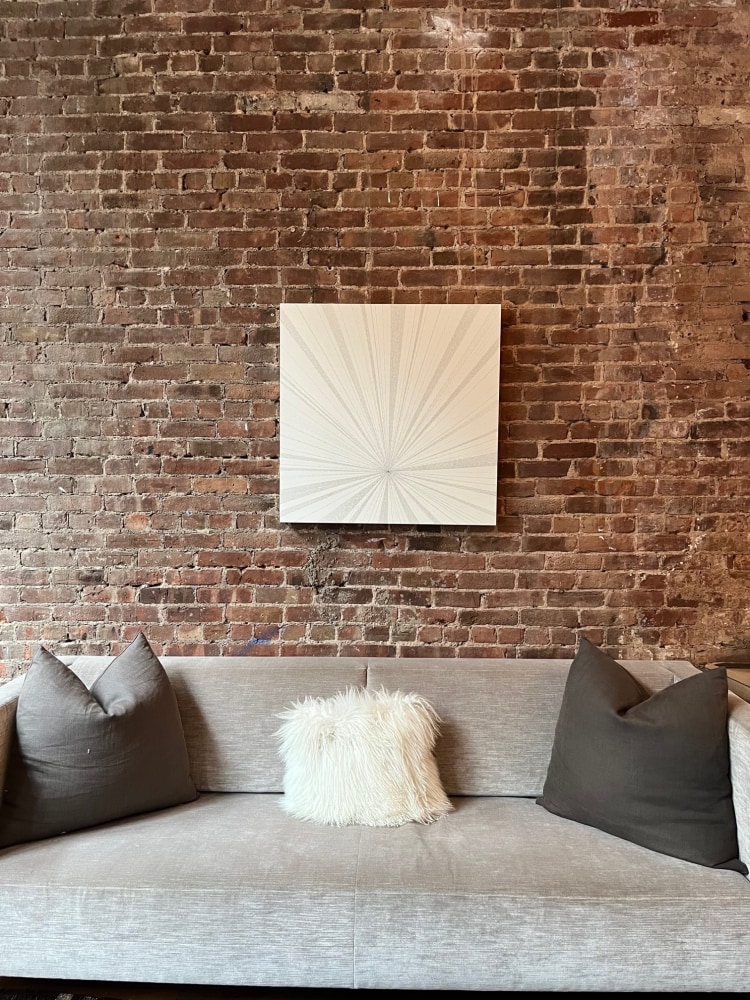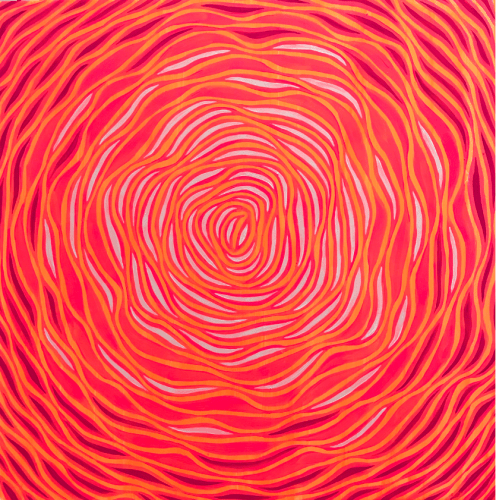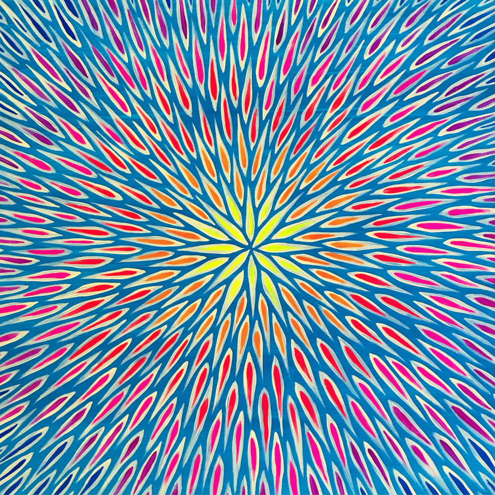 Patricia Fabricant’s radials take an organic, sometimes animalistic form, populating her canvases with seed, scale, and wave-like shapes. Interested in the tension between decoration and art, Fabricant leans into abundance, packing her paintings with swells of color and frenetic energy. Though electric, Fabricant's process is meditative. She allows shapes and lines to reveal themselves as they launch from the center of her compositions. Patricia Fabricant is a painter, curator, and award-winning book designer, born in New York City. She received her BA from Wesleyan University and studied painting in Florence, Italy. Her abstract and figurative paintings have been exhibited widely at such galleries as M David & Co, Front Room, SFA Projects, Equity Gallery, Morgan Lehman, the Painting Center, and 490 Atlantic. She lives and works in Brooklyn, NY.