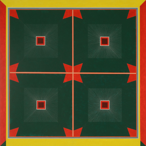 Mary Judge’s geometric abstract paintings pull from her experience working with Italian frescos and ceramics. Her understanding of pattern and scale bring an immersive quality to her work. Her forms do not merely fold out from the center of the composition, rather, there is the sense that they could break out of the pictorial plane, replicating endlessly and with deft precision. Mary Judge attended Moore College of Art in Philadelphia, (BFA), Skowhegan School of Painting and Sculpture, Maine and Tyler School of Art (MFA), graduating from the Rome campus. Judge worked for several years with the Grazia factory in Deruta, painting for the design market while maintaining her fine art studio practice. Her works are in The Philadelphia Museum of Art, The Fogg Art Museum, The Corcoran Gallery of Art, The British Museum, The Victoria and Albert Museum and the Museo d'Arte Contemporanea di Cassino, Italy. Mary Judge currently divides her time between New York and Puglia, Italy.