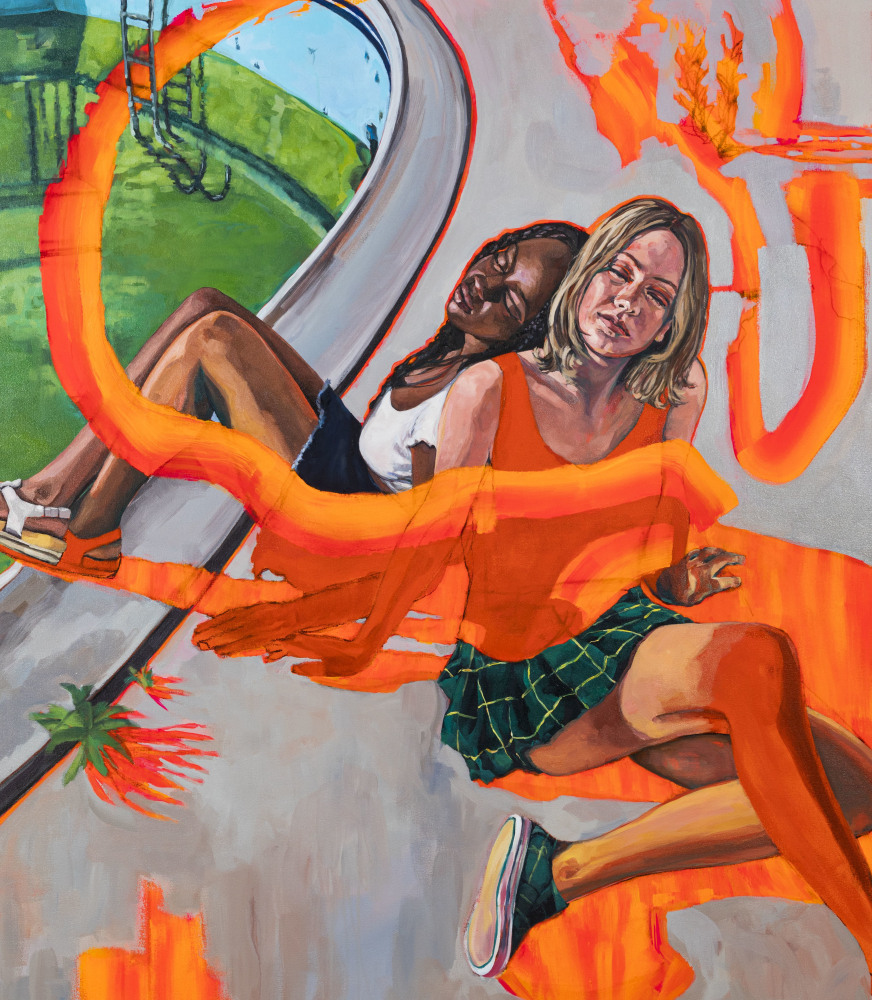 Garvey|Simon is pleased to present Sharon Shapiro: Fever Dream, opening January 21, 2022, at Artisan Lofts, 143 Reade Street in TriBeCa. Fever Dream includes a selection of large-scale paintings, and intimate collage works from Sharon Shapiro. Uncanny and incisive, Shapiro draws on her experience growing up female in the American South as fodder for her imagery. Fever Dream is at once narrative and enigmatic, engaging the viewer in a seduction while presenting a contemporary viewpoint on feminism and commentary on racial and climate crisis. The exhibition will be on view at Artisan Lofts until June 16, 2022. The exhibition will be on view by appointment only.