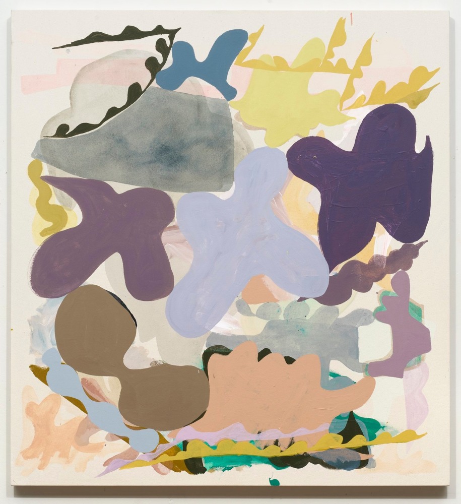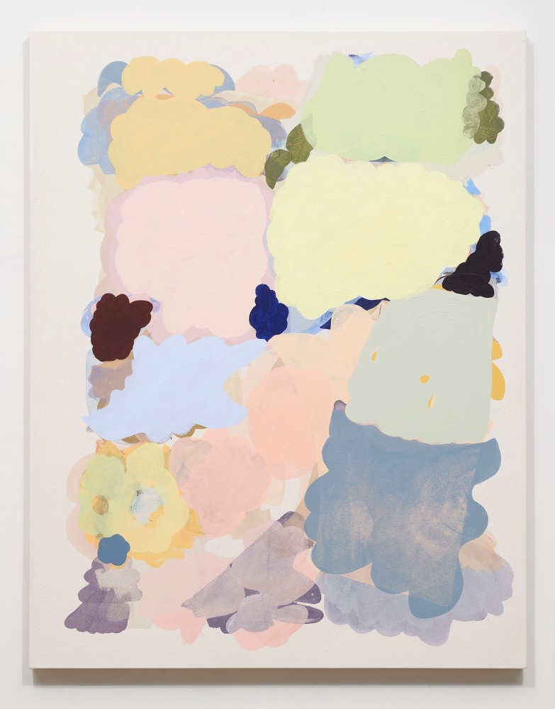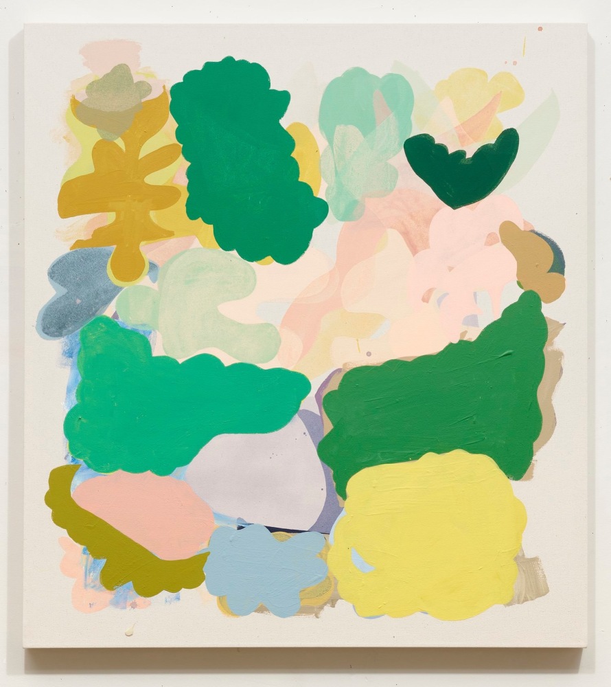 Painter Jen Garrido (b. 1974, Los Angeles) creates paintings on paper, canvas, and wood panels that feature irregular shapes; she often arranges multi-colored abstract forms in close proximity to one another against neutral backgrounds, evoking calm and quiet contemplation. Drawing on her own sensorial experience and internal musings, the artist produces thoughtful works, including wildflower studies that explore the boundary between figuration and abstraction. While mixed-media work on paper V1-W14 (2019) depicts overlapping shapes in a range of hues, other artworks such as Wildflower Study B2 (2018) focus more directly on representing the visible world, portraying layers of flowers painted in different opacities and shades of blue and green. In addition to her fine art practice, Garrido also runs a textile studio in San Francisco, under the alias Jenny Pennywood, that produces small batches of locally sewn home goods and wearable art. She has participated in solo exhibitions at galleries in Austin and San Francisco.