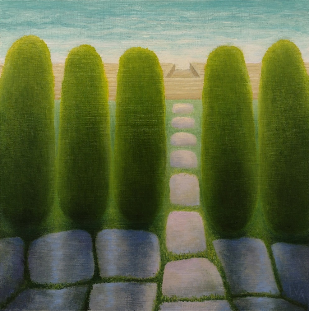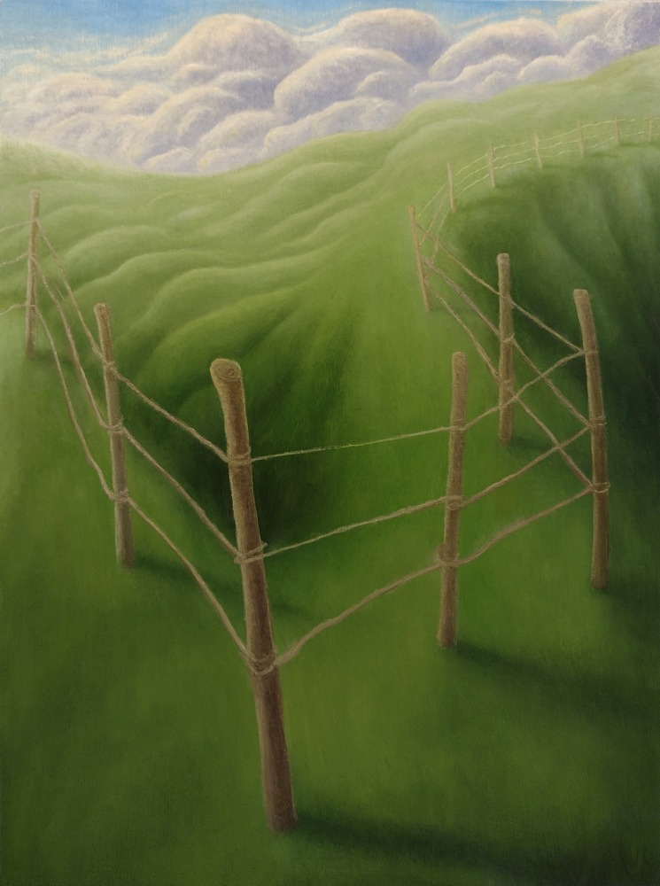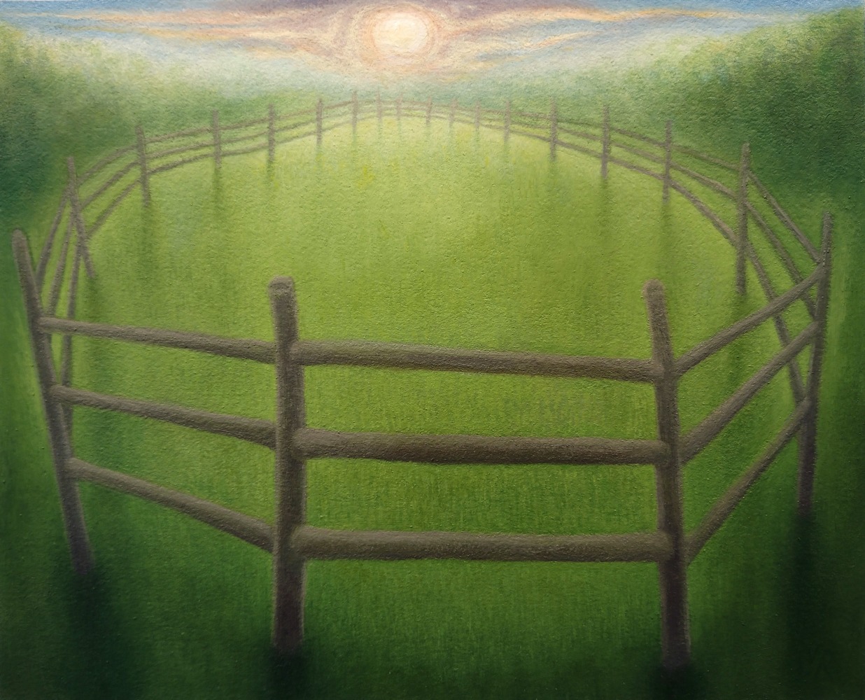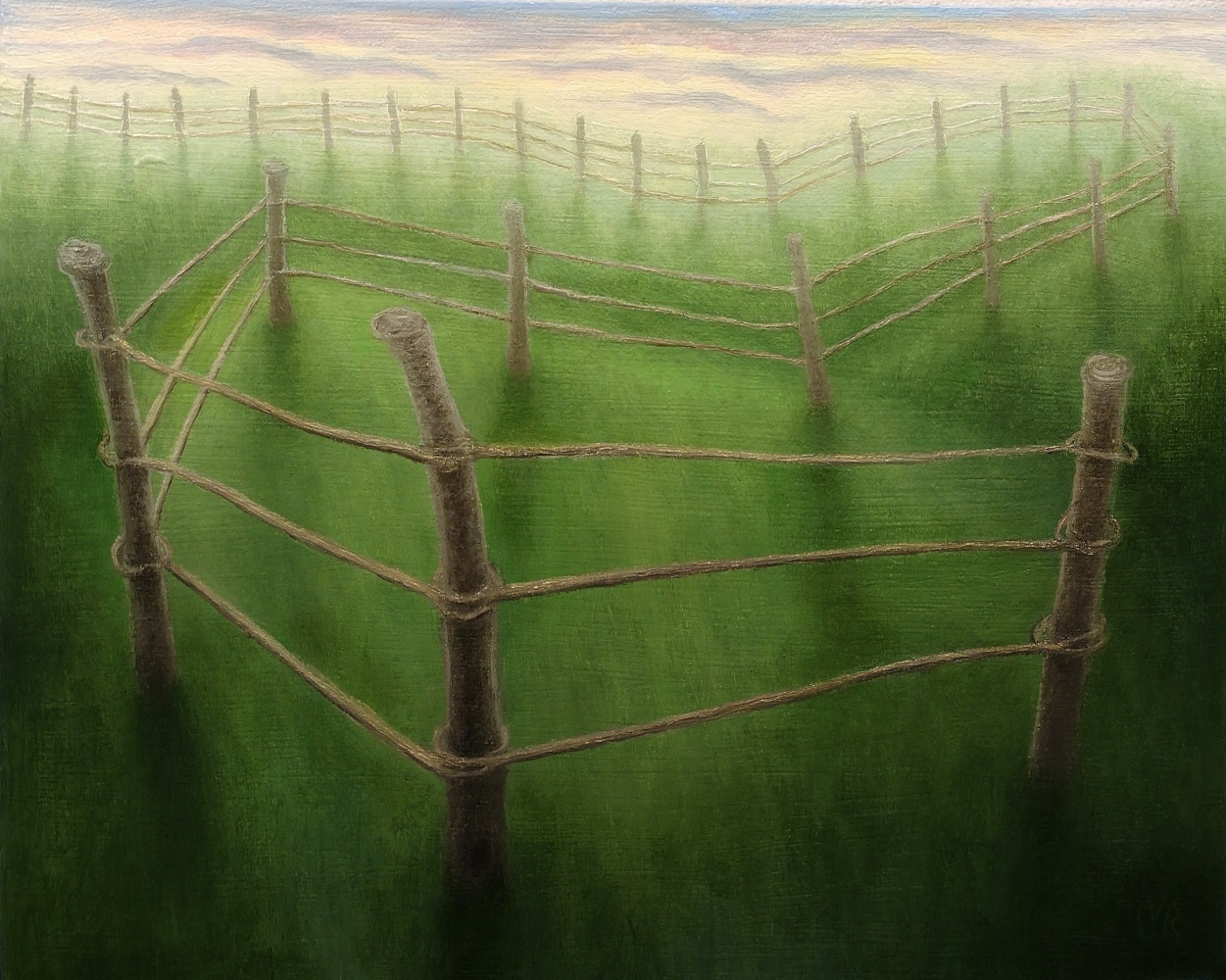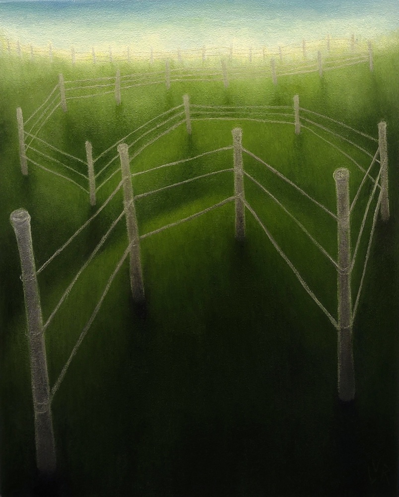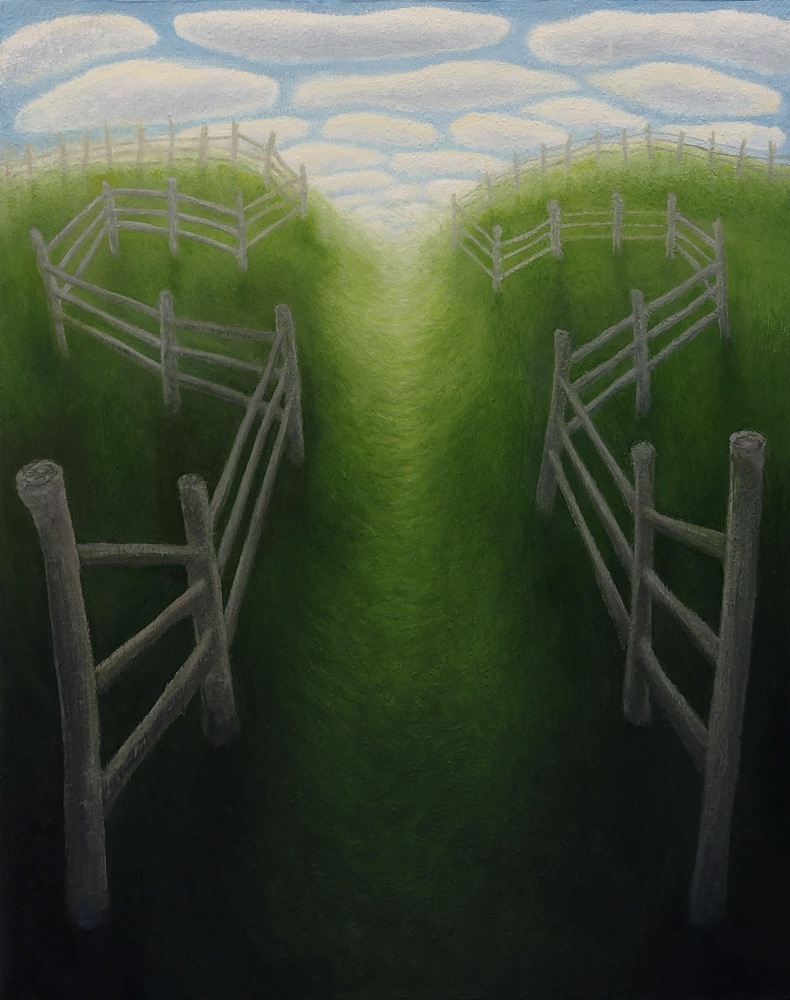 Ghostly and enigmatic, Laura Von Rosk’s paintings of enclosures are shaped by the unreliability of memory. Her raked vantage point not only points back to the presence of a viewer, but elongates these perimeter barriers, stretching them into the gauzy haze of unknown terrain. The soft, immaterial nature of Von Rosk’s brushstrokes fill her landscapes with narrative ambiguity–do her fences entrap the viewer, or lead them away? Laura Von Rosk earned her MFA from the University of Pennsylvania, and her BFA from the State University of New York at Purchase. Her paintings have been exhibited nationally in both solo and group shows. Her awards include the 2023 NYSCA Individual Artist Grant, the 2004 New York Foundation for the Arts Fellowship in Painting, grants from the Pollack Krasner Foundation, and numerous residencies, including Yaddo and the Millay Colony.