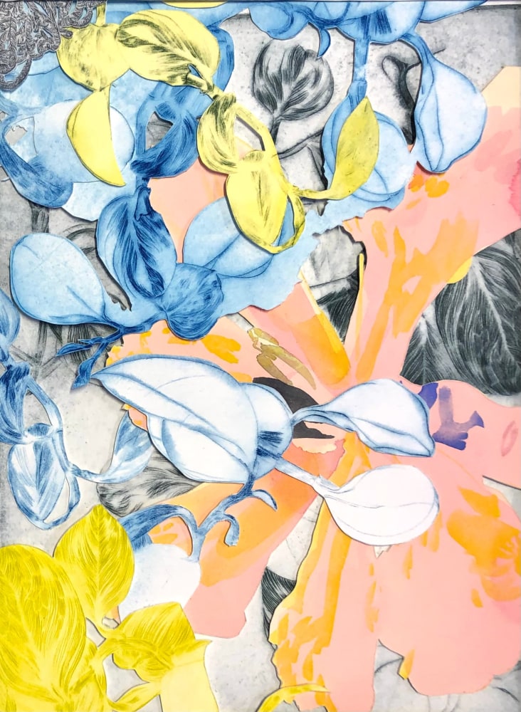 My meticulously observed drawings and prints on paper range in size from 7’ long immersive watercolor and pastel botanical landscapes to handheld, exquisitely cut and layered tunnel books.