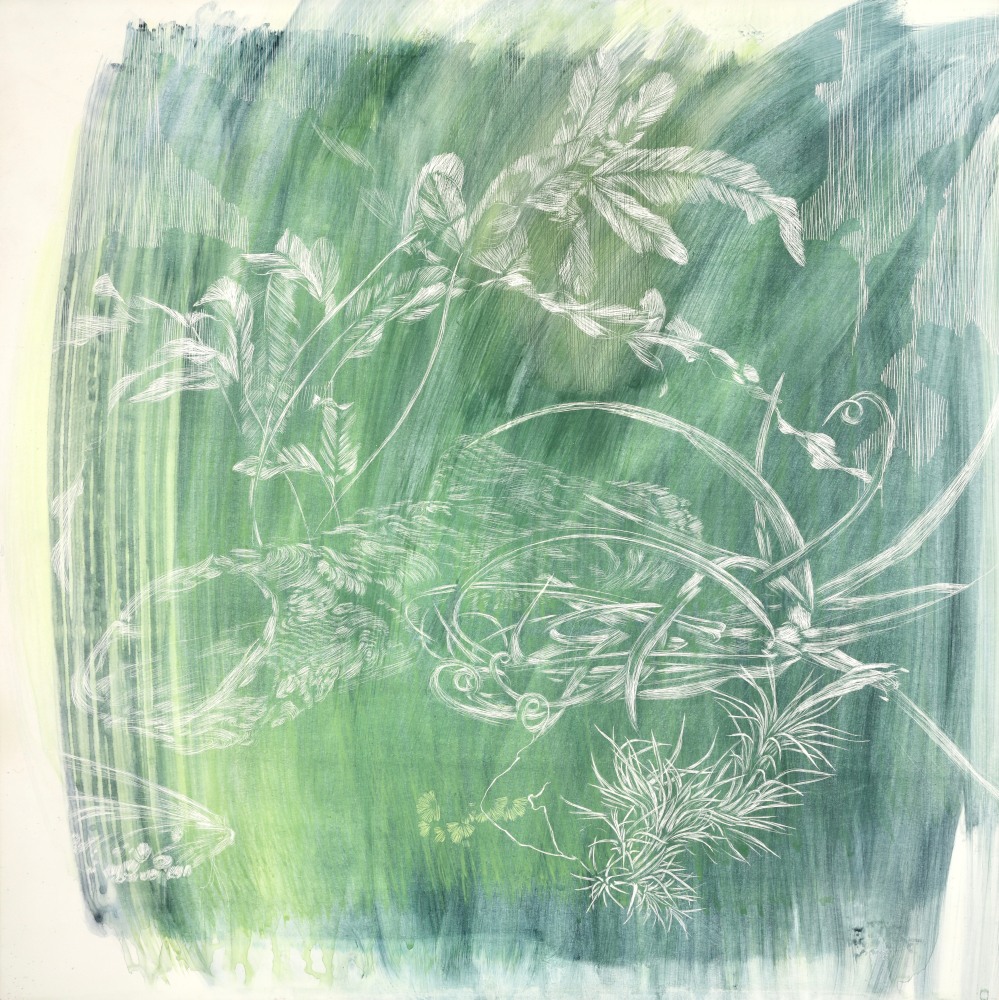 My immersive botanical landscapes on paper or panel are invitations to float and find respite. The progressive acts of labor in the structure of coral, mollusc shells, and ferns remind me of the repeated pulse of mothering and renewal. Recent tunnel books and collages are utopian constructions akin to Victorian garden books; they are possible fictions, fairy-tale futures — an exuberantly inhabitable present. It has been many years now that I have lived without violence or threat in my home or neighborhood, and I celebrate in paper, healing as I accrue the layers of peaceful years.