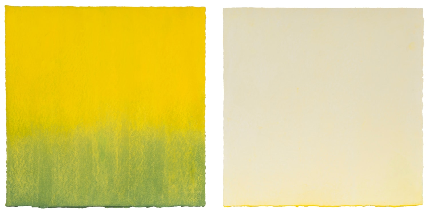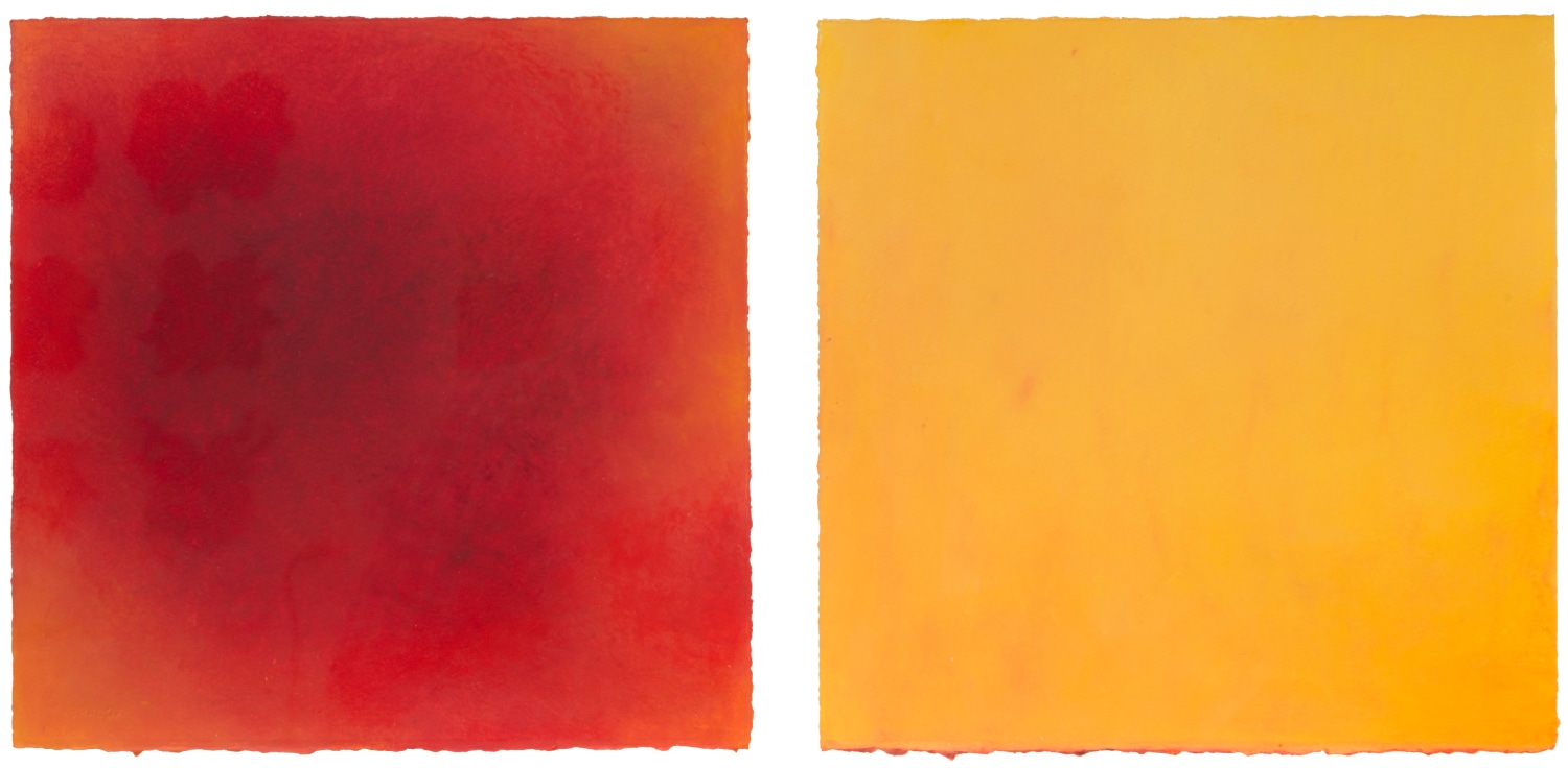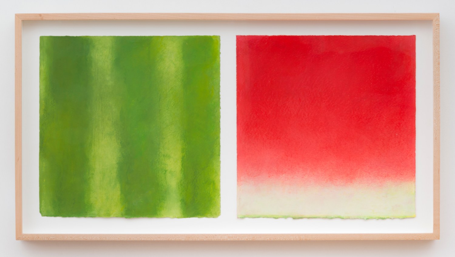 New York, NY (CHELSEA) Garvey|Simon is pleased to present Daisy Craddock: Summer Produce, an exhibition of oil pastel diptychs fresh from the studio, by Daisy Craddock. Her subjects’ flavors and fragrances can be sensed right away, and though these works appear to be minimalist squares of color from a distance, they are decidedly realist in nature. With skin on the left and flesh on the right, the diptychs display a subtle yet detailed complexity that is created from layers of scumbled and polished oil pastels and oil sticks. Whether from a farmstand upstate or a neighboring city deli, the fleeting nature of each edible specimen is palpable in Craddock’s delicate surfaces.