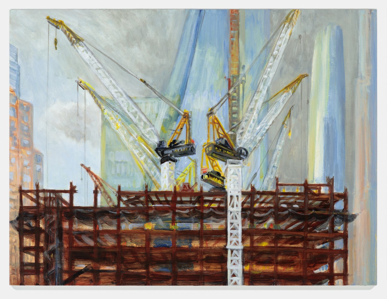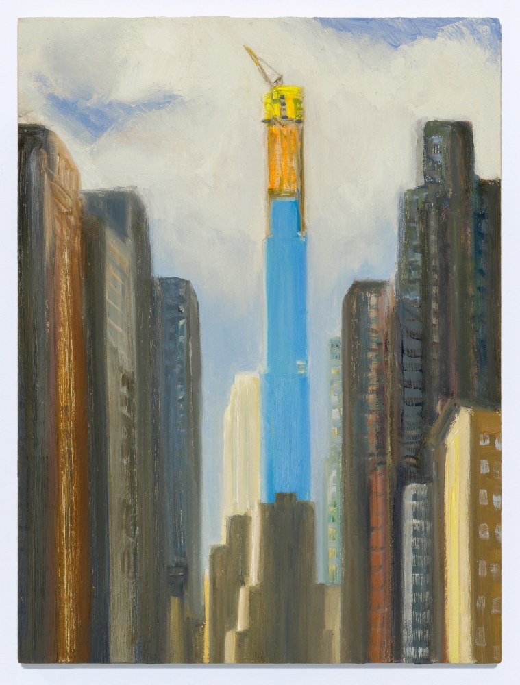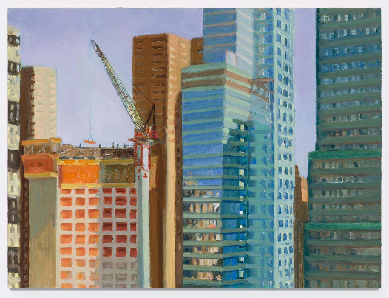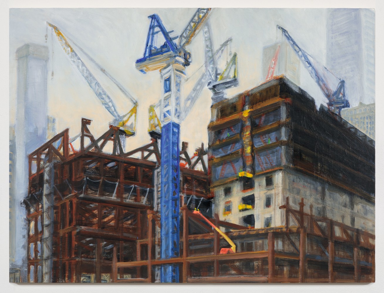 Gwyneth Leech tracks the progress of Manhattan construction with the sensitivity of an Impressionist painter. Initially struck by a skyscraper emerging outside her studio window, Leech became captivated by the choreography of construction and sense of temporality contained within the project. She often paints from the same vantage point multiple times, or conversely, the same subject from multiple street corners, tracking not only the pace of the urban development, but the more subtle, atmospheric indicators of the passage of time, as well. When viewed as a complete series, Leech’s paintings delineate two individual timelines – that of the building’s progress, and that of Manhattan’s progress. When viewed through Leech’s diligent attention, both chronologies are shown to ebb and wane, speeding up and slowing down at irregular intervals. Gwyneth Leech offers up a contemporary iteration of Monet’s cathedrals and haystacks, pointing to a modernity in which there is a fleeting sense of permanence.