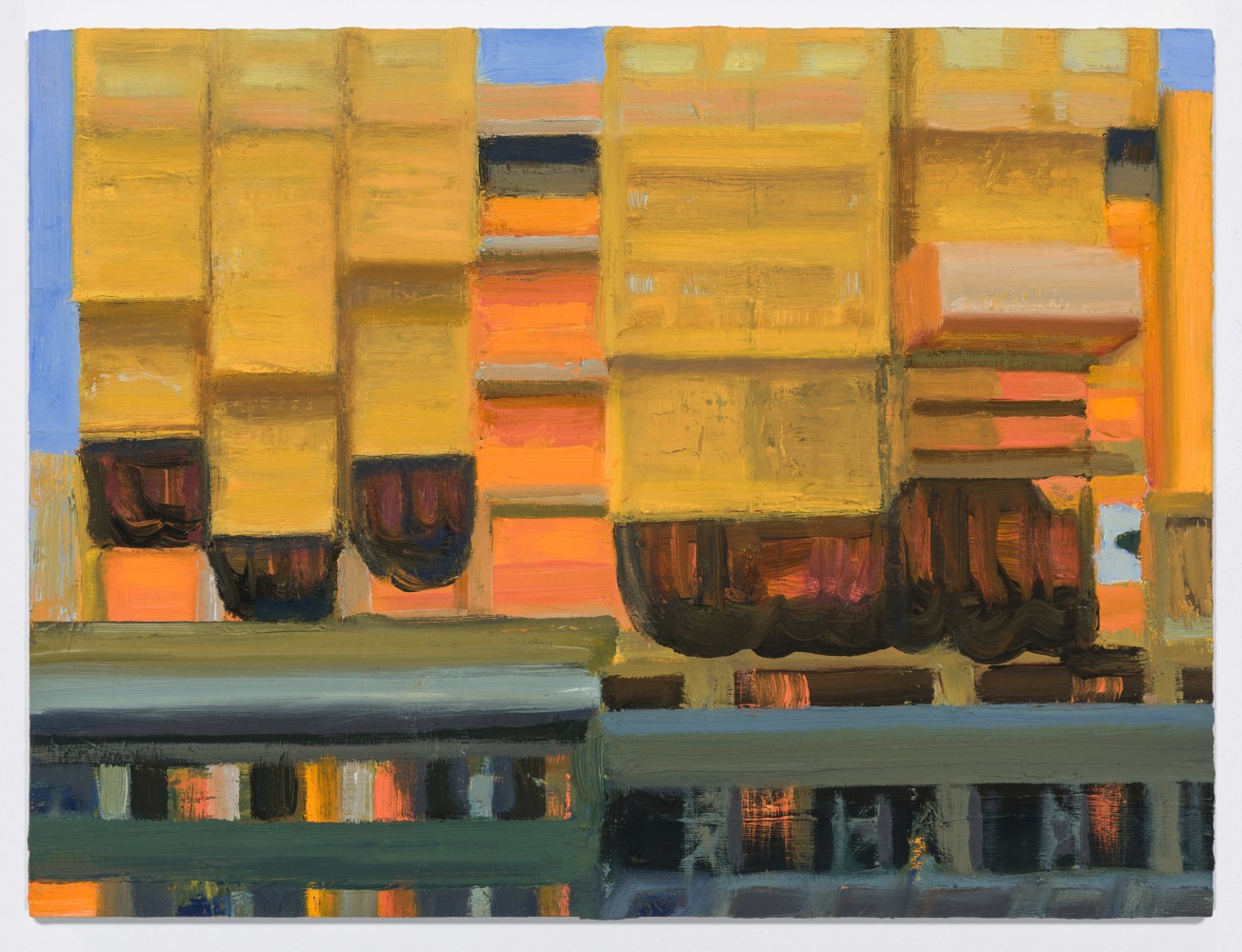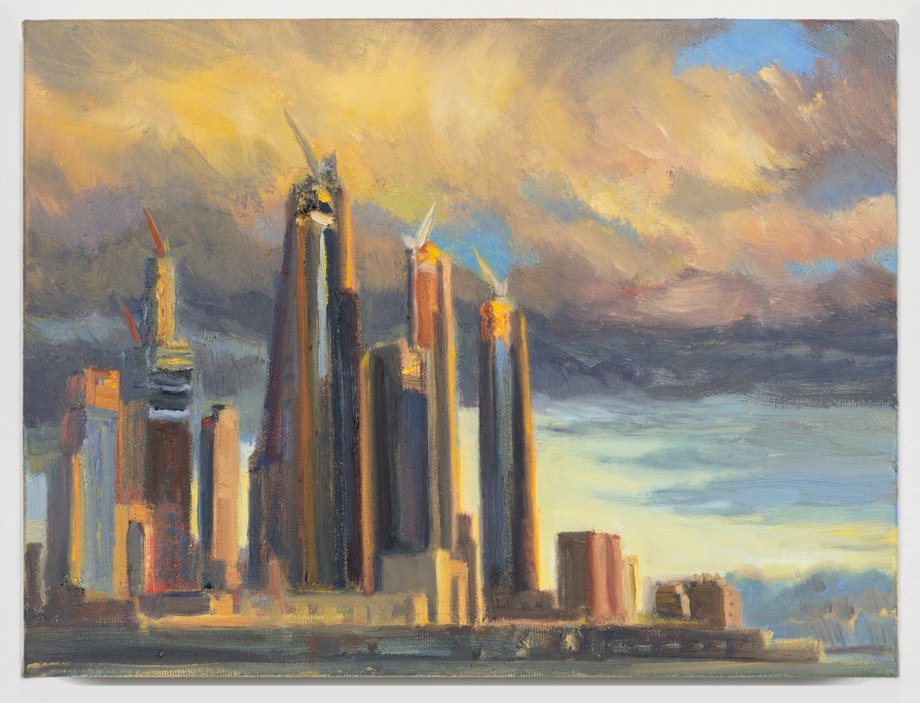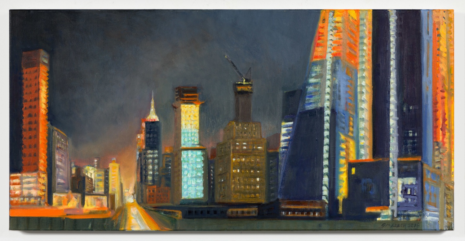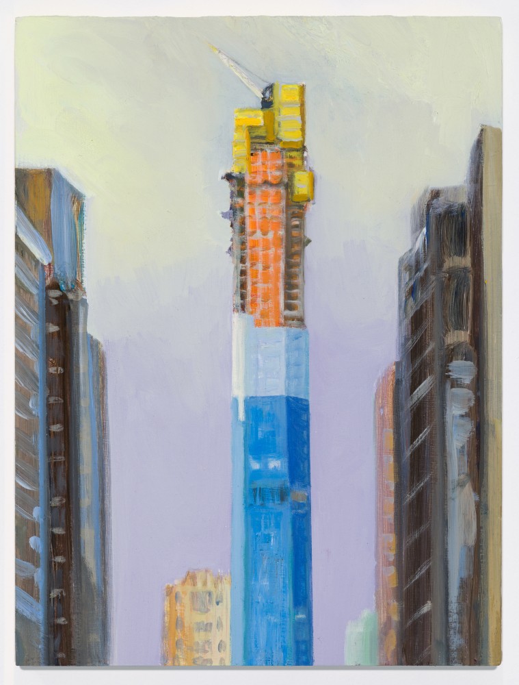 Gwyneth Leech tracks the progress of Manhattan construction with the sensitivity of an Impressionist painter. Initially struck by a skyscraper emerging outside her studio window, Leech became captivated by the choreography of construction and sense of temporality contained within the project. She often paints from the same vantage point multiple times, or conversely, the same subject from multiple street corners, tracking not only the pace of the urban development, but the more subtle, atmospheric indicators of the passage of time, as well. When viewed as a complete series, Leech’s paintings delineate two individual timelines – that of the building’s progress, and that of Manhattan’s progress. When viewed through Leech’s diligent attention, both chronologies are shown to ebb and wane, speeding up and slowing down at irregular intervals. Gwyneth Leech offers up a contemporary iteration of Monet’s cathedrals and haystacks, pointing to a modernity in which there is a fleeting sense of permanence.