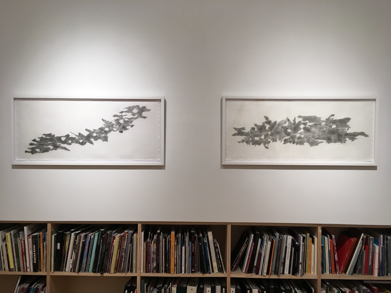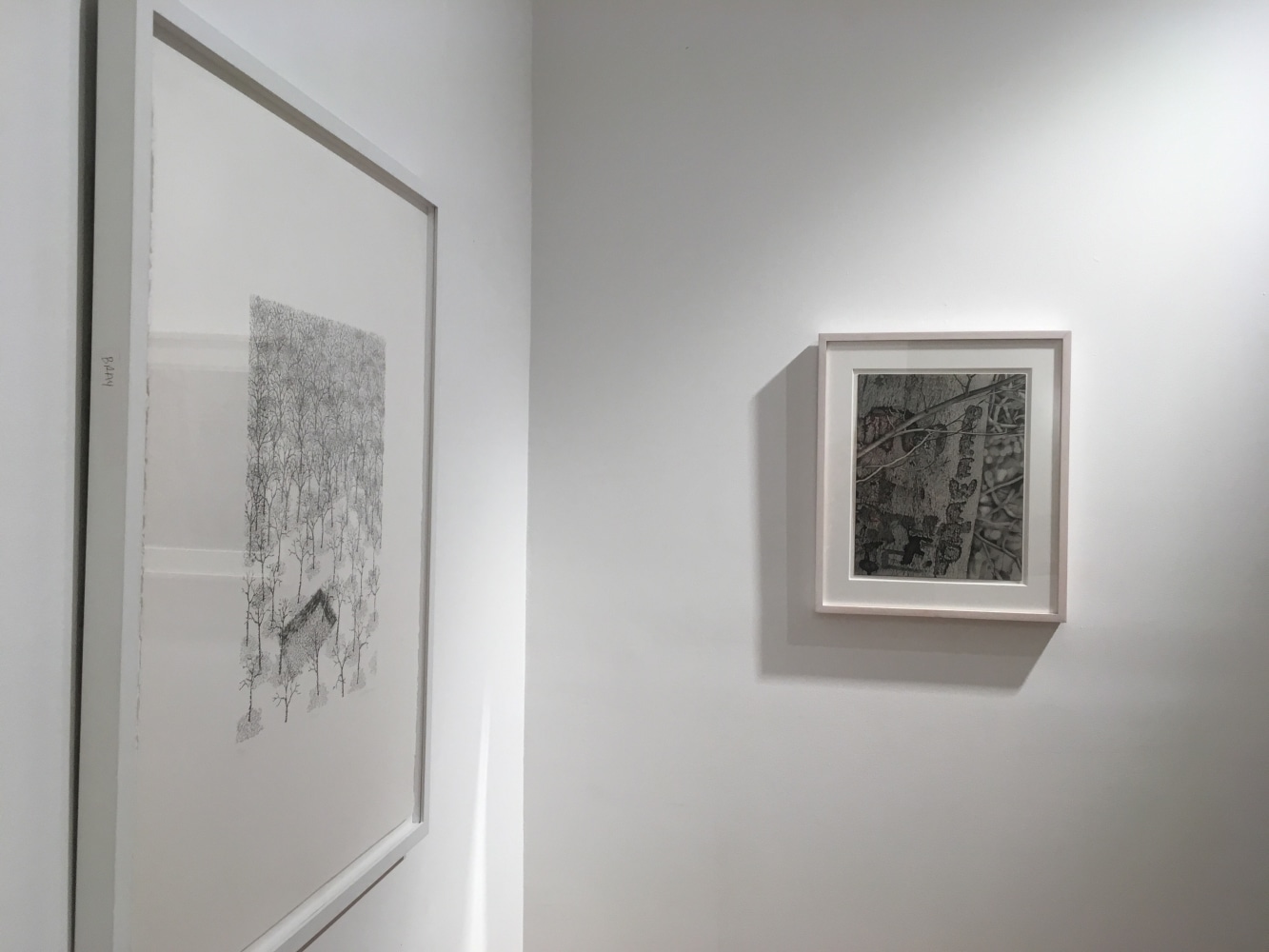 Mary Reilly works with both powdered graphite and graphite pencil on paper. The artist memorializes tree carvings or “graffiti” found within the woods of Alley Pond Park, Queens. The imagery in her drawings continues the dialogue Reilly pursues with urban life and nature via the discovery of oft-forgotten, secluded spaces in the parks and other outlying sites within New York City.