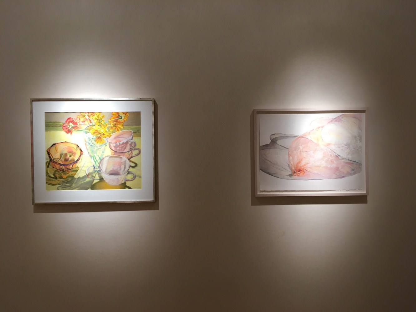 Janet Fish is known for her large, bold, Realist still life paintings. Among her other favorite subjects are everyday objects, such as clear glassware, either empty or partially filled with liquid. Other subjects include teacups, flower bouquets, textiles with interesting patterns, goldfish, vegetables, and mirrored surfaces. She occasionally includes the human figure in her still lifes. Her work has been characterized as photorealist, although she does not consider herself as such, and also associated with new realism. Elements such as composition and use of color demonstrate her point of view as a painter rather than a photographer.
