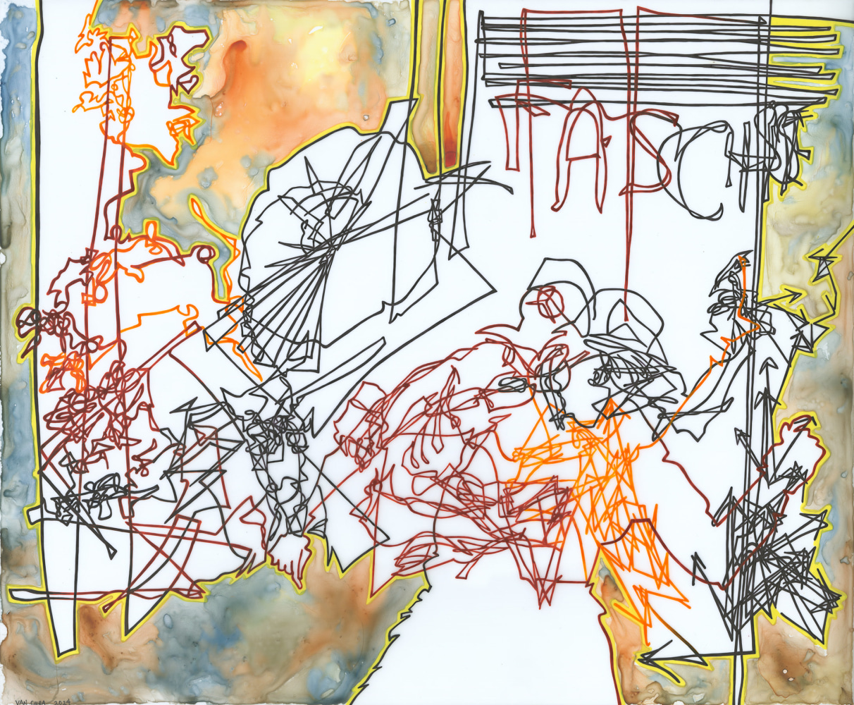 (New York, NY – Upper East Side) – Garvey|Simon is pleased to present Marjorie Van Cura: Out of Line opening November 6, 2024 at DFN Projects, 16 East 79 Street, New York, NY. The exhibition includes a selection of Van Cura’s abstracted drawings that depict scenes from recent political protests, rallies, and marches. Van Cura captures the tension, passion, and kinetic energy of these demonstrations with her densely packed linework and dynamic compositions, challenging the edges of representation. There will be an opening reception on Wednesday, November 6 from 5-7 PM at 16 East 79 Street, New York, NY 10075. The artist will be present. Gallery hours are Monday through Friday, 11 am - 4 pm, or by appointment at other times.