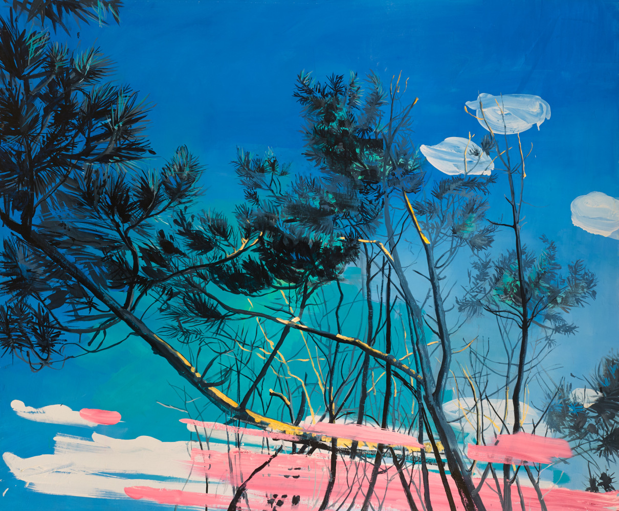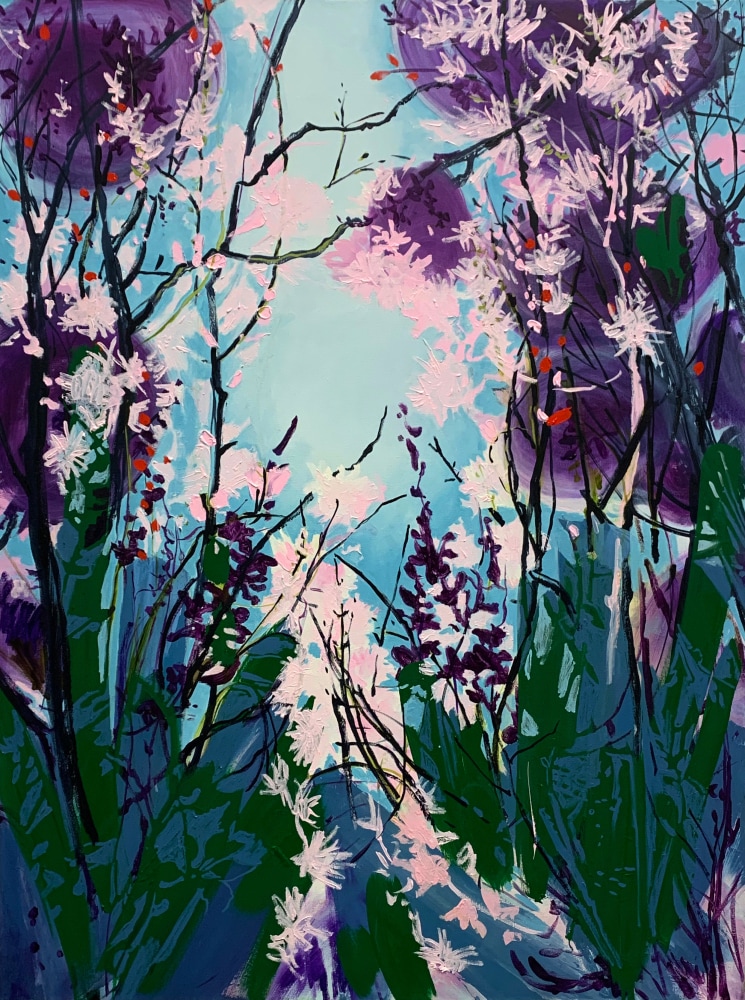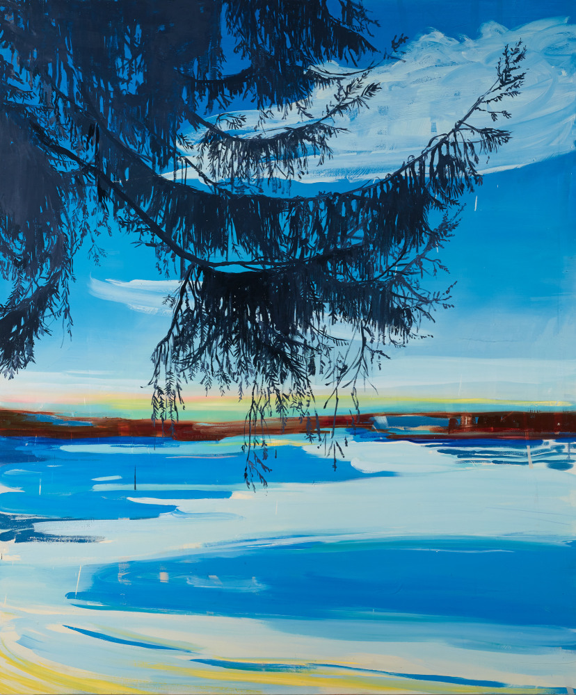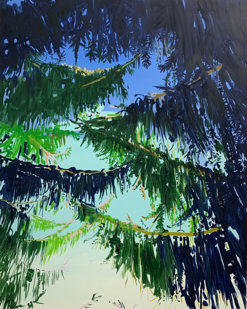 Claire McConaughy’s boldly expressive and vibrant landscape paintings evoke poetic moments connected to the present and past. Her work explores the history of the landscape, space, mystery, humanity, and beauty. Using a combination of painted passages and fluidly painted lines, her process allows for a variety of marks and layering of imagery, with interlacing images of trees, branches, and visions of woods. The layers and color in her paintings create spatial tensions and surprising metaphors. McConaughy depicts an East Coast landscape with an imaginative lens and a predilection for reengineering the observed environment, moving or abstracting depth of field, and adding provocative swaths of color.
