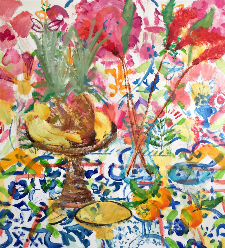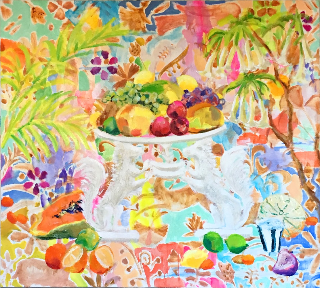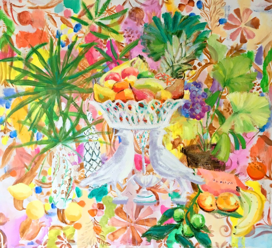 Melanie Parke’s lush paintings combine landscape, interior, and still-life elements. Parke reconstructs familiar interiors and filters them through the ideology of memory. She sets up the space intuitively, with broad marks and textured gestures, then pieces together arrangements to compose a homespun narrative. Her subjects often center on domestic interiors, rustic tables, entryways, window nooks, decorative objects, and gardens with the intent to suggest safe gathering spots. Flowers representing friendships and the women in her life are often the center of her work. The presence of birds suggests curiosity and wonder and sometimes allegories of fragility.