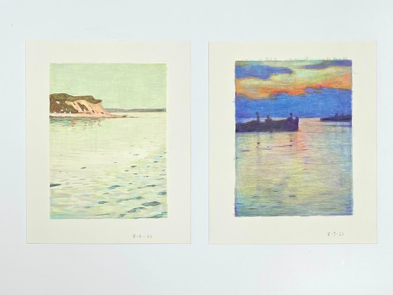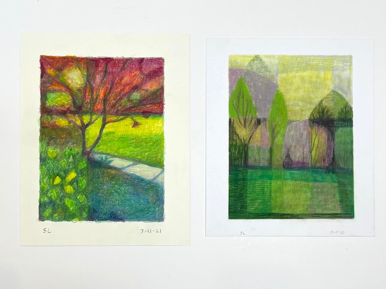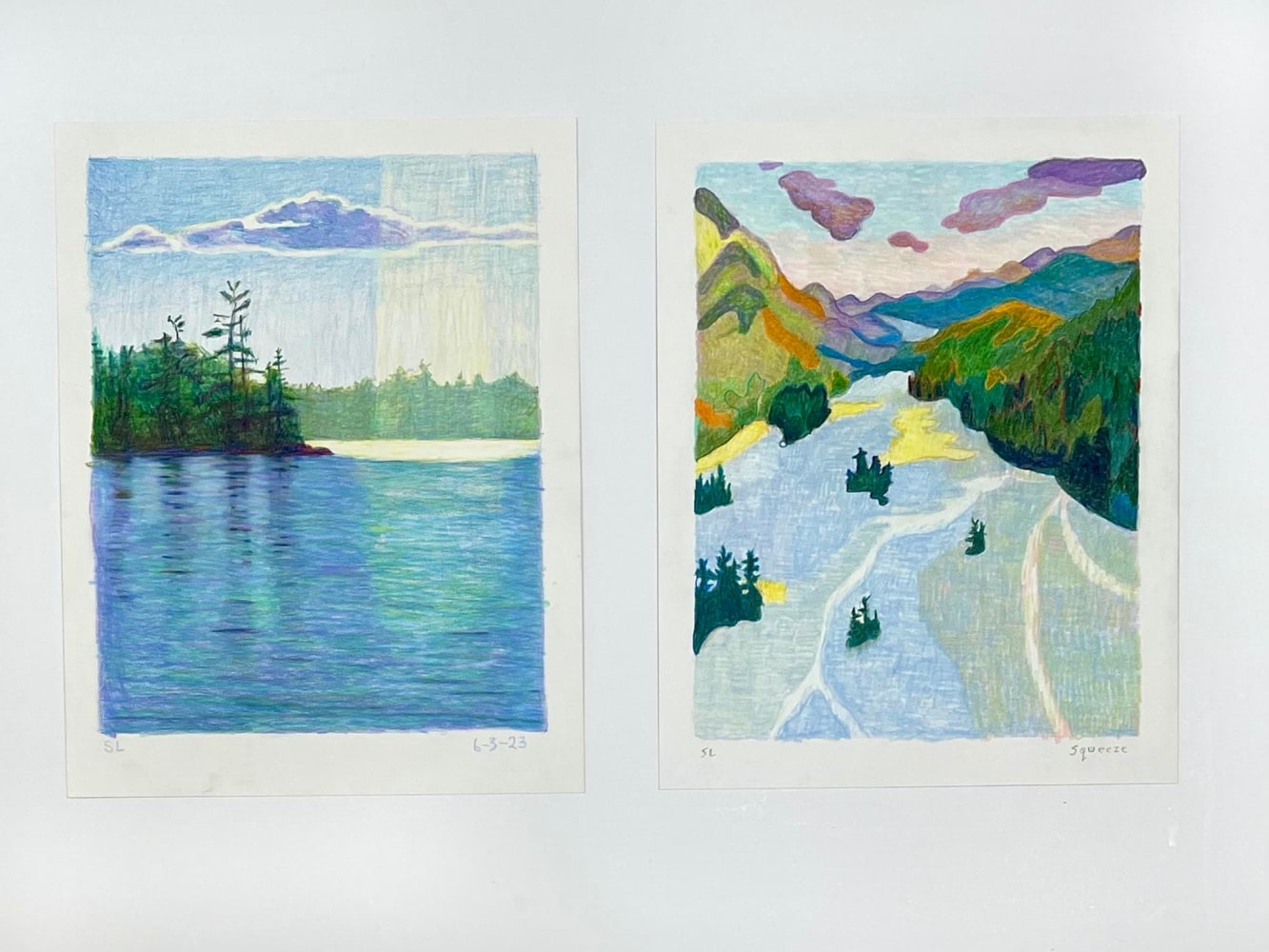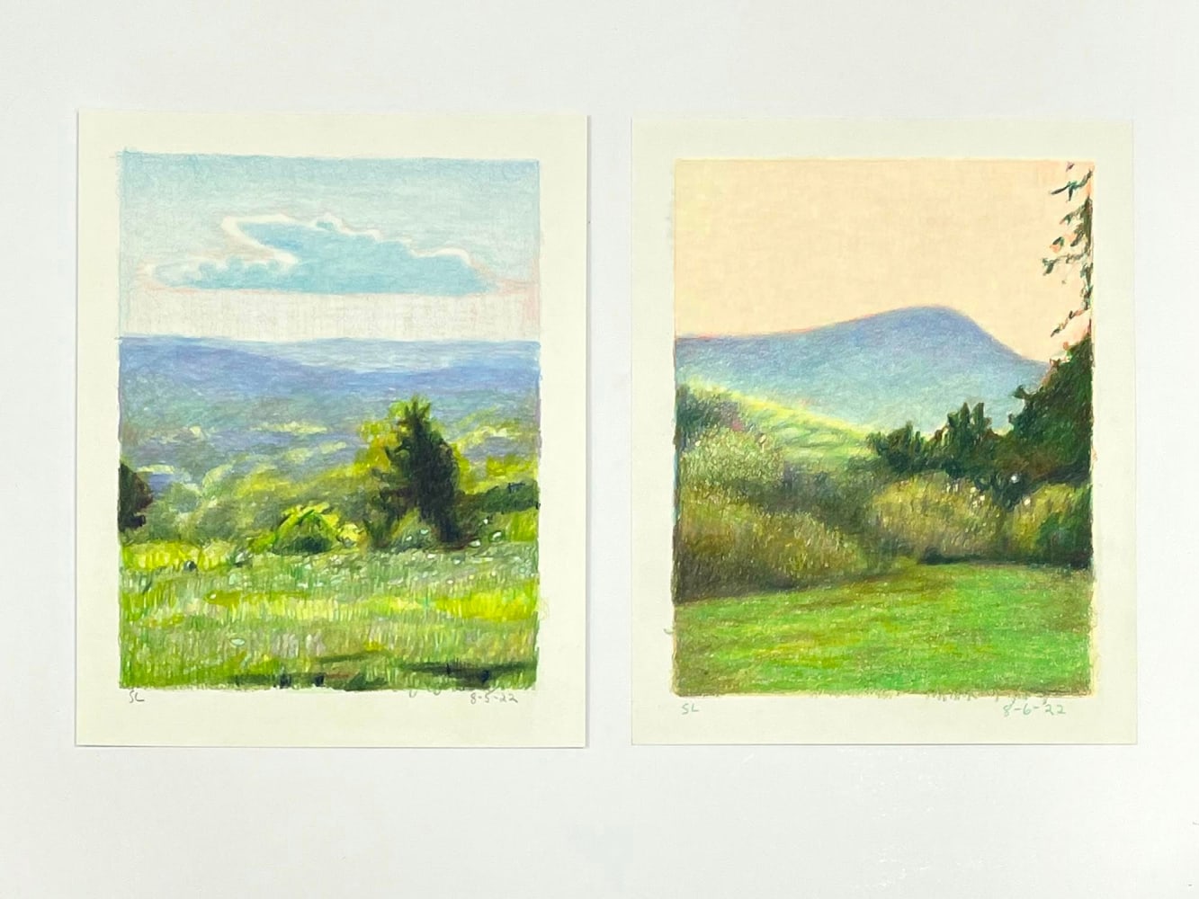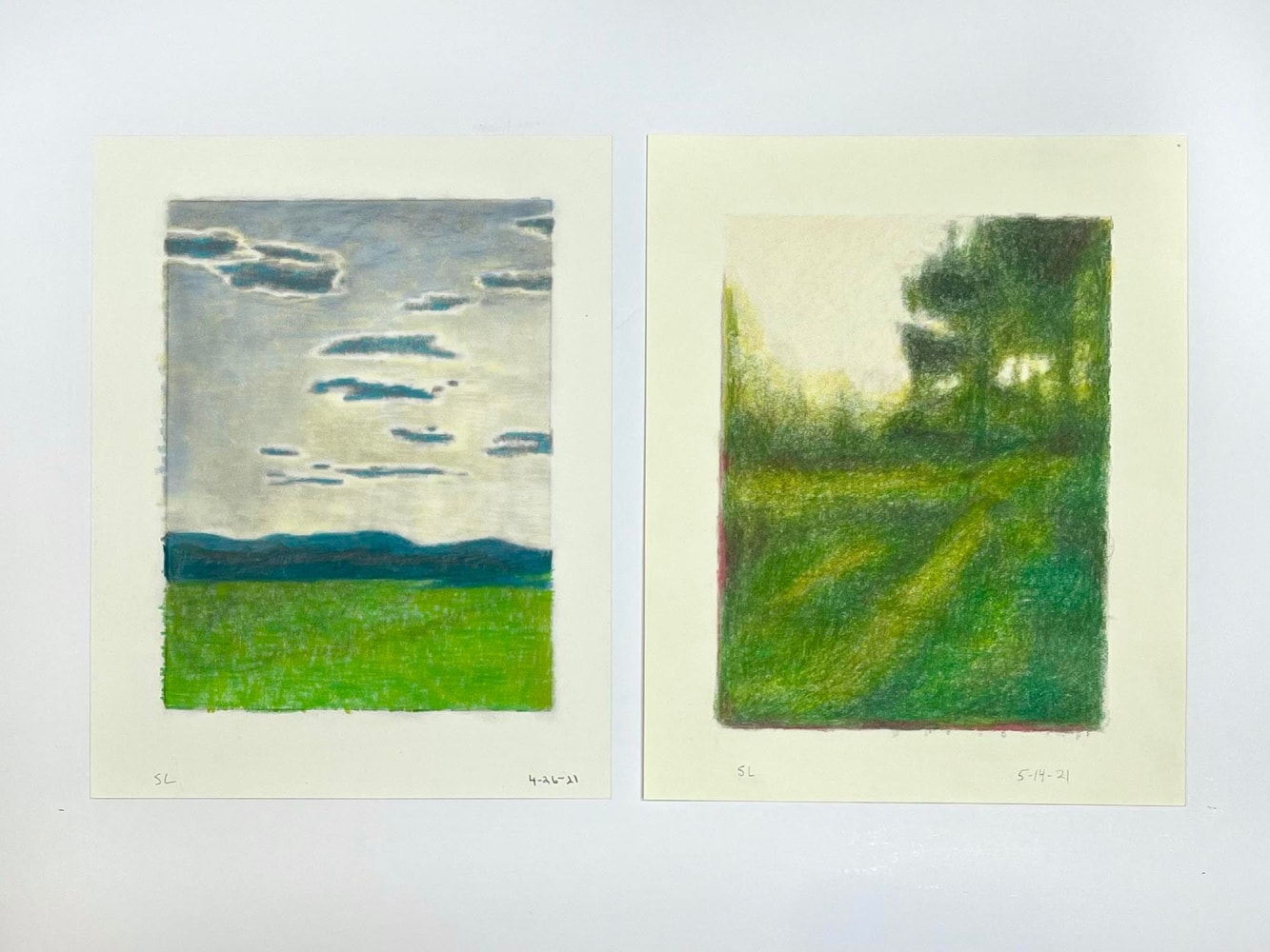 The artist comments: These drawings are an inquiry into the suchness of place; its qualia, composition, and affect. Gently Place Me Here is about wanting to be placed, as in being-a-place. Landscape drawing situates a place in me, where I can both taste it and tinker with it. This immersive (and gentle) activity brings me closer to the strange and familiar places I long to belong to.