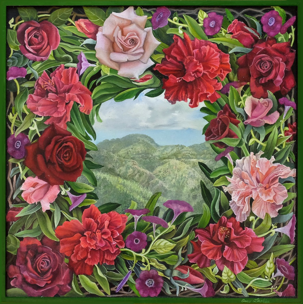 Amy Laskin’s botanical still lifes are a surrealist blend of body and bloom. This combination of unlike elements forms the basis of Laskin’s practice, creating visual foils that bring into focus the mystique of nature, gender, and identity. Ornate, fractal-like flower petals mingle with fabric and facades to hint at human forms, forging a connection between humans and the environment. Amy Laskin has been shown at the Carl Hammer Gallery, Chicago, IL, Chelsea Gallery, Kingston, Jamaica, and the Salena Gallery, Brooklyn, NY. She is included in the permanent collections at the Philip and Muriel Berman Museum of Art, Collegeville, PA and the Bank of Jamaica in Kingston. Amy Laskin lives and works in Kingston, Jamaica.