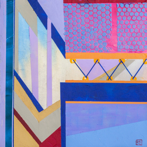 Barbara Kemp Cowlin uses acrylics to achieve the precarious facets of her architectural abstractions. Contradictions proliferate her spaces, disorienting the viewer, and challenging their perception of long-habituated surroundings. Cowlin’s work is included in the City of Phoenix Arts Collection; the University of Arizona Special Collections; Providence Medical Center in Everett, Washington; Kenyon College in Gambier, Ohio; First Bancorp Headquarters in Troy, North Carolina.; Baylor University Medical Center, Houston, Texas; Edison & Sprinkles Architecture & Design, Vancouver, British Columbia; Grafix, Maple Heights, Ohio. She lives and works in Oracle, Arizona.