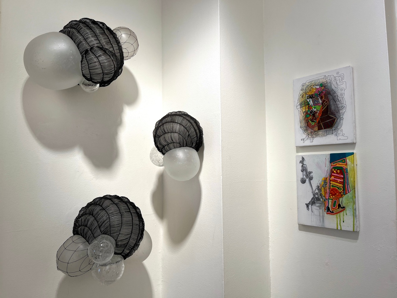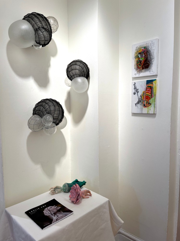 Leslie Fry is represented in this show with fantastical sculptures of female hands, titled the “Cuffed” series. Tensely poised and mannered gestures, inspired by Parmigianino and Caravaggio, cascade into blooms and barnacles, creating a mesmerizing visual dissonance. This elision of romance and rigidity both draws attention to the limitations of the female form and liberates it from the constraints of reality. Leslie Fry’s works have been exhibited internationally at such venues as Kunsthaus in Hamburg, Zwitscher Machine Gallery in Berlin, Hangaram Art Museum in Seoul, Windspiel Galerie in Vienna, Couvent des Cordeliers in Paris, Artists Space and Wave Hill in New York, deCordova Sculpture Park and Museum near Boston, and Centre des Arts Visuels in Montreal. Her public sculptures have been commissioned in New York, South Korea, Montreal, Florida, Wisconsin, and Vermont; public collections include Tufts University, Songchu International Sculpture Park, Freehand New York, Kohler Arts Center, Tampa Museum of Art, Fleming Museum of Art, Musée d’art de Joliette, and St. Petersburg, Florida’s Museum of Fine Arts. Fry’s M.F.A. is from Bard College, and her B.A. is from the University of Vermont, with a Foundation year at the Central School of Art in London. She currently lives and works in Winooski, VT.