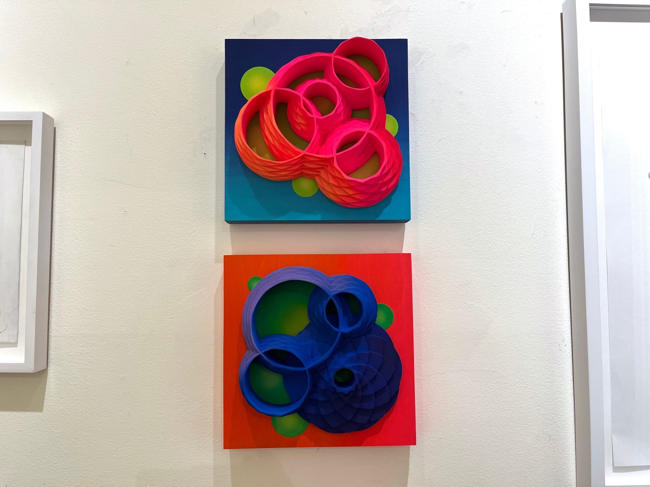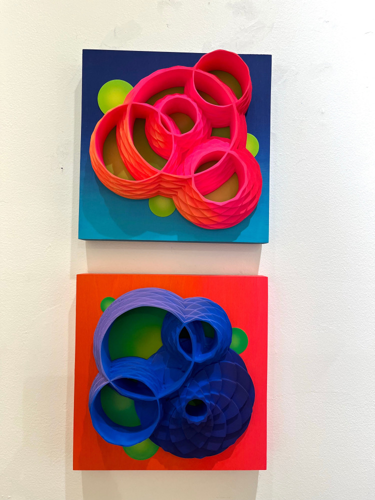 Christine Romanell’s three-dimensional paintings explore physics, relativity, and design principles. Her fractals build upon one another in endless tessellations and permutations, building off the pictorial, illusionary space of the panel and entering into the three-dimensional world. Colorful and prismatic, Romanell’s paintings seek to span time, material, and culture. Her work has been featured on the Smithsonian Channel and she is a recipient of an NEA grant for her work through Chashama in NYC. The artist received a 2022 Fellowship from the New Jersey State Council on the Arts. Her work is held in the private collection of Pat Bell alongside Tom Nussbaum and Willie Cole and the collection of the Mother Cabrini Health Foundation. She has lectured at Pratt University and taught at the College of St. Elizabeth and Bergen County Community College. Her BFA is from the School of Visual Arts (NYC) and her MFA is from Montclair State University, NJ.