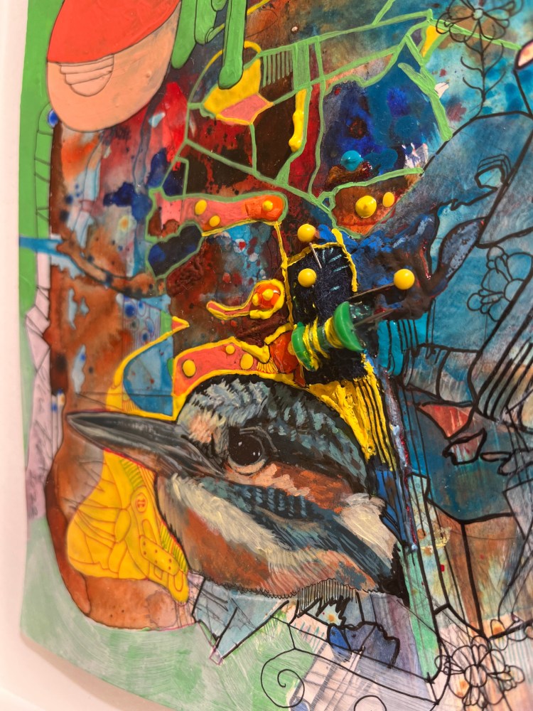 Julie Peppito’s works are an amalgam of materials and perspectives. She allows errant elements, forms, and raised patterning to accumulate across the surface of her mixed media works, challenging the notion of depth and focal point. Populated by sketched lines and images of childhood and innocence, Peppito’s works represent the shape of memory while also nodding to human impact on the Earth. Peppito holds an MFA with a concentration in sculpture from Alfred University in Alfred, NY (2004) and she received her BFA from The Cooper Union in New York, NY (1992). She has exhibited at such venues as Kentler International Drawing Space, Brooklyn Botanic Garden, The Long Island Children’s Museum, Heskin Contemporary, Art in General, PS122, Momenta, and Ethan Cohen Gallery, among others. Peppito received a New York Foundation for the Arts Fellowship in Sculpture (2001). The artist lives and works in Brooklyn, NY.