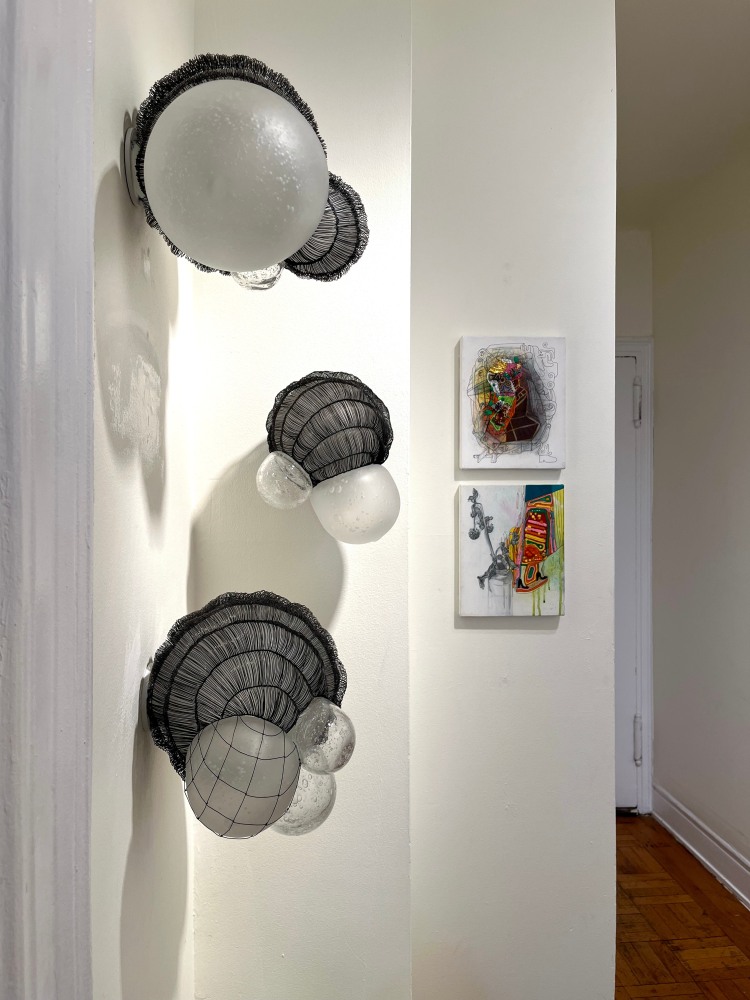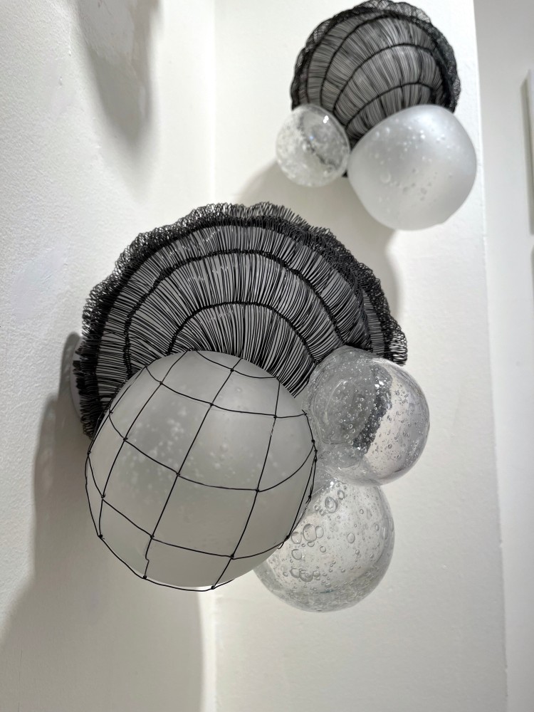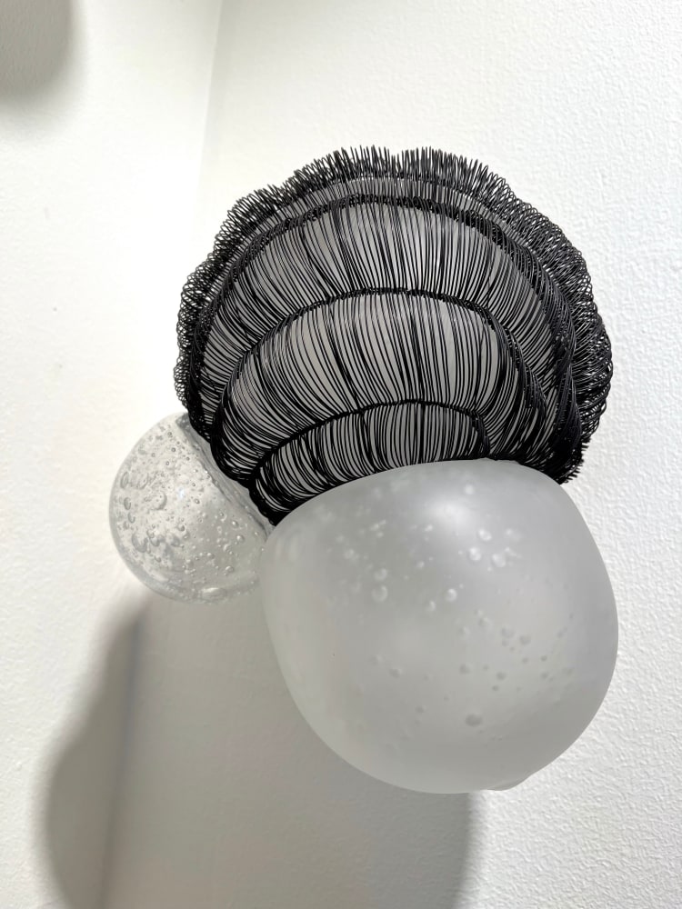 Beth Dary’s biomorphic glass and woven steel sculptures are elemental in their form and presence. Evocative of water molecules, bubbles, and fractal patterns formed by the liquid contaminants in urban runoff, Dary’s enigmatic forms gesture towards the impact of human interference on water supplies. Woven steel threatens to overtake its fragile, glass neighbors, creating a sense of danger in these otherwise elegant, reticent sculptures. Dary holds a Bachelor of Fine Arts from Syracuse University and a Masters of Fine Arts from Memphis College of Art. She has participated in several artist residency programs including Yaddo, Virginia Center for the Creative Arts and the Lower Manhattan Cultural Council. Her work has been curated into exhibits at the Ural Industrial Biennial of Contemporary Art in Russia, Satellite and Miami Project Art Fairs in Miami, FL. Dary’s work has been commissioned by Battery Park City in Manhattan and she has received grants from the Rockefeller Brothers Fund and the The Manhattan Community Arts Fund. Her work is included in private, corporate and museum collections in the USA and Europe.