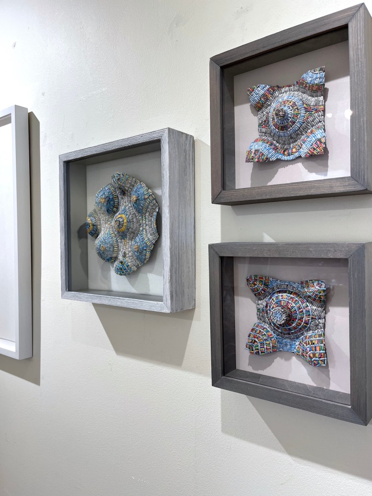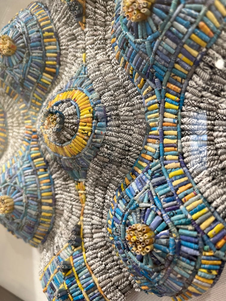 Jaynie Crimmins’s abstract, wall-mounted sculptures embody transfiguration. Constructed of meticulously handled shreds of magazines, catalogs, and security envelopes, her materials facet into intricate explorations of craft and design. Though maximalist, there is a latent sense of frugality and purpose in Crimmins’s works, their meaning transcending the hints of text and array of colors. Her work has been shown at ART on PAPER NYC; and exhibited at the Sharjah Museum of Art during the Islamic Arts Festival in the United Arab Emirates; SPRING/BREAK Art Show, NYC; Governors Island Art Fair, NYC; the National Museum of Romanian Literature in addition to museums throughout the United States including the Muscarelle Museum of Art at the College of William and Mary, VA; The Hudson Valley Museum of Contemporary Art [HVMOCA], Peekskill, NY; Hunterdon Art Museum, NJ; Zuckerman Museum of Art, Kennesaw State University, GA; Alexandria Museum of Art, Alexandria, LA.