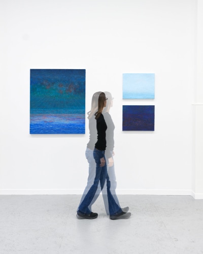 Ann Holsberry is a painter of considerable acclaim who lives both in San Francisco and Paris. Her artistic work is a celebration of life and its inherent beauty on the large and small scale. Holsberry’s work is notable for its deep, sweeping blue hues and has been shown in galleries across the globe. Holsberry enjoys working outdoors and with materials sourced from nearby locations, which she believes allows the natural environment to influence her work as it develops. Both macro and micro elements of these mixed-medium installments are speaking to the environment from which they came.