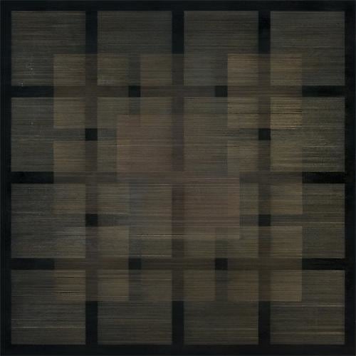In addition to the various types of metal used, the artist also uses myriad metallic tools to create her tonal surfaces – a stylus for line, flat pieces of metal to achieve shimmering atmosphere, and even metal-wool pads to create unusual textures. Layering, line and light are the most important components of her meditative compositions.